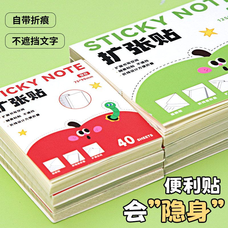 任意扩张贴便利贴不遮挡文字透明可折叠考研小学生用可撕有粘性便签贴纸初高中生记笔记贴订正错题办公便利贴
