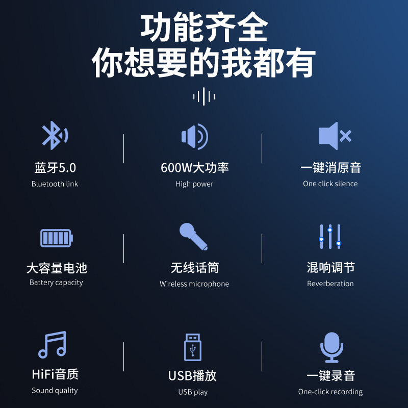 无线蓝牙K歌带话筒大功率重低音大容量电池