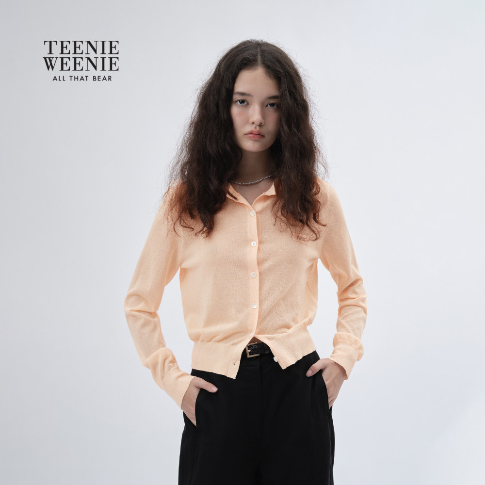 【含亚麻】TeenieWeenie小熊女装毛针织衫2025秋季薄款空调衫开衫