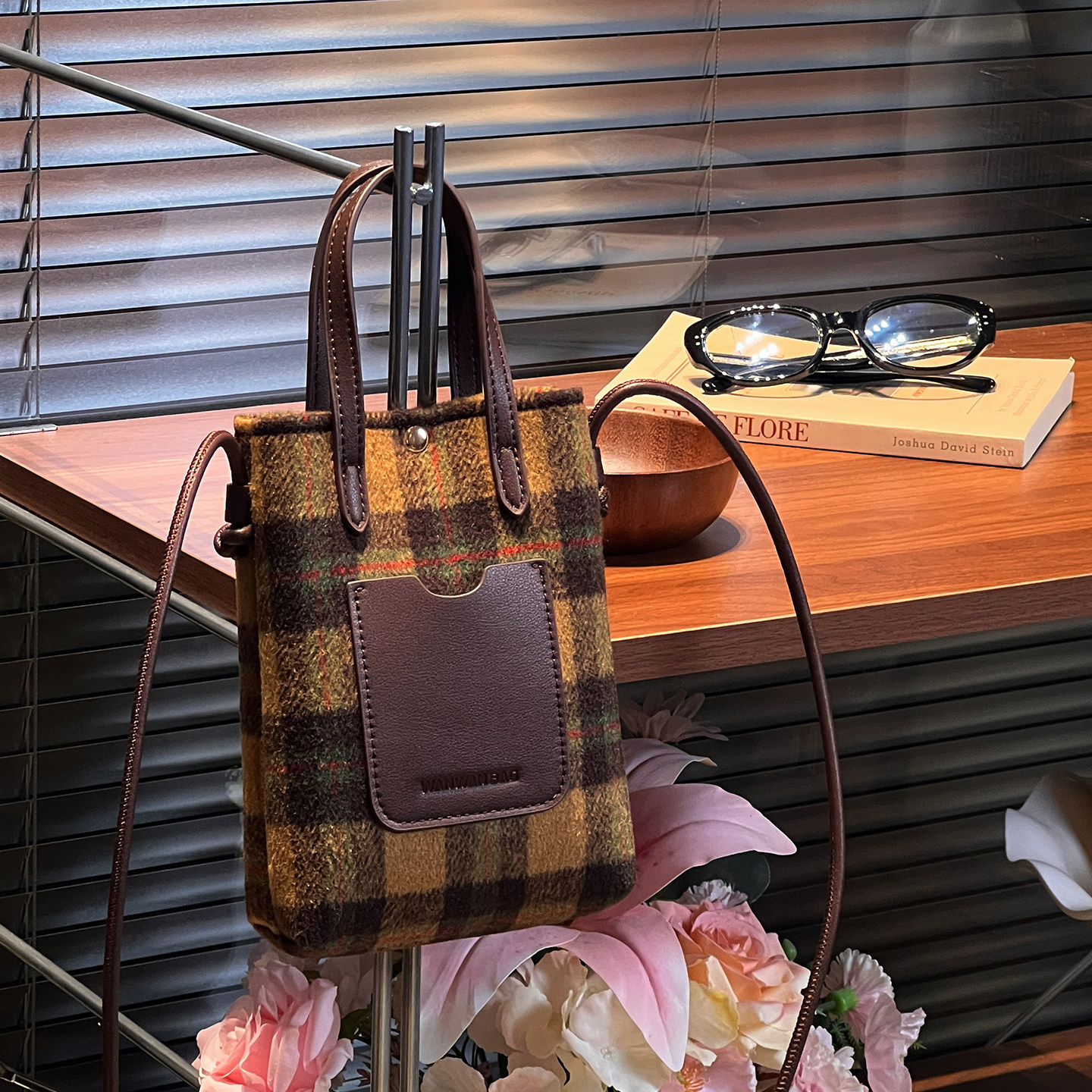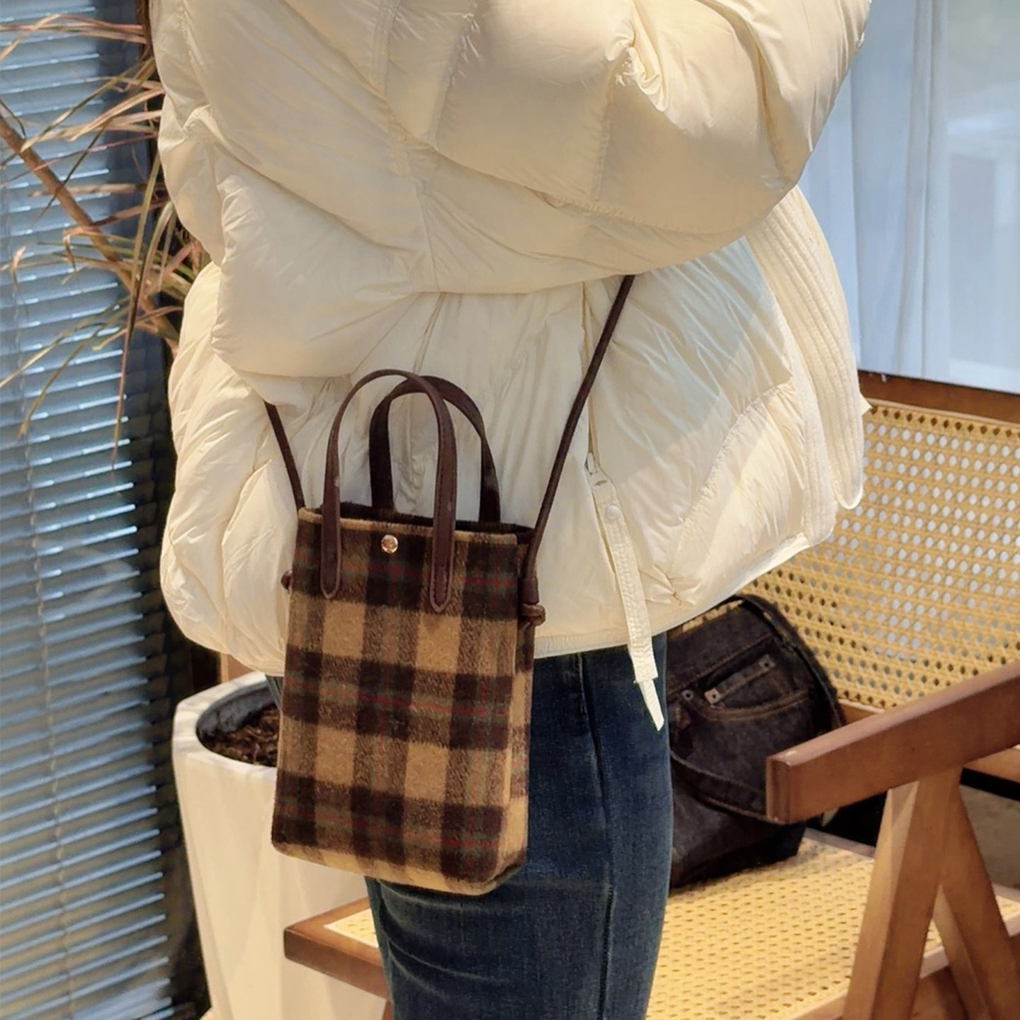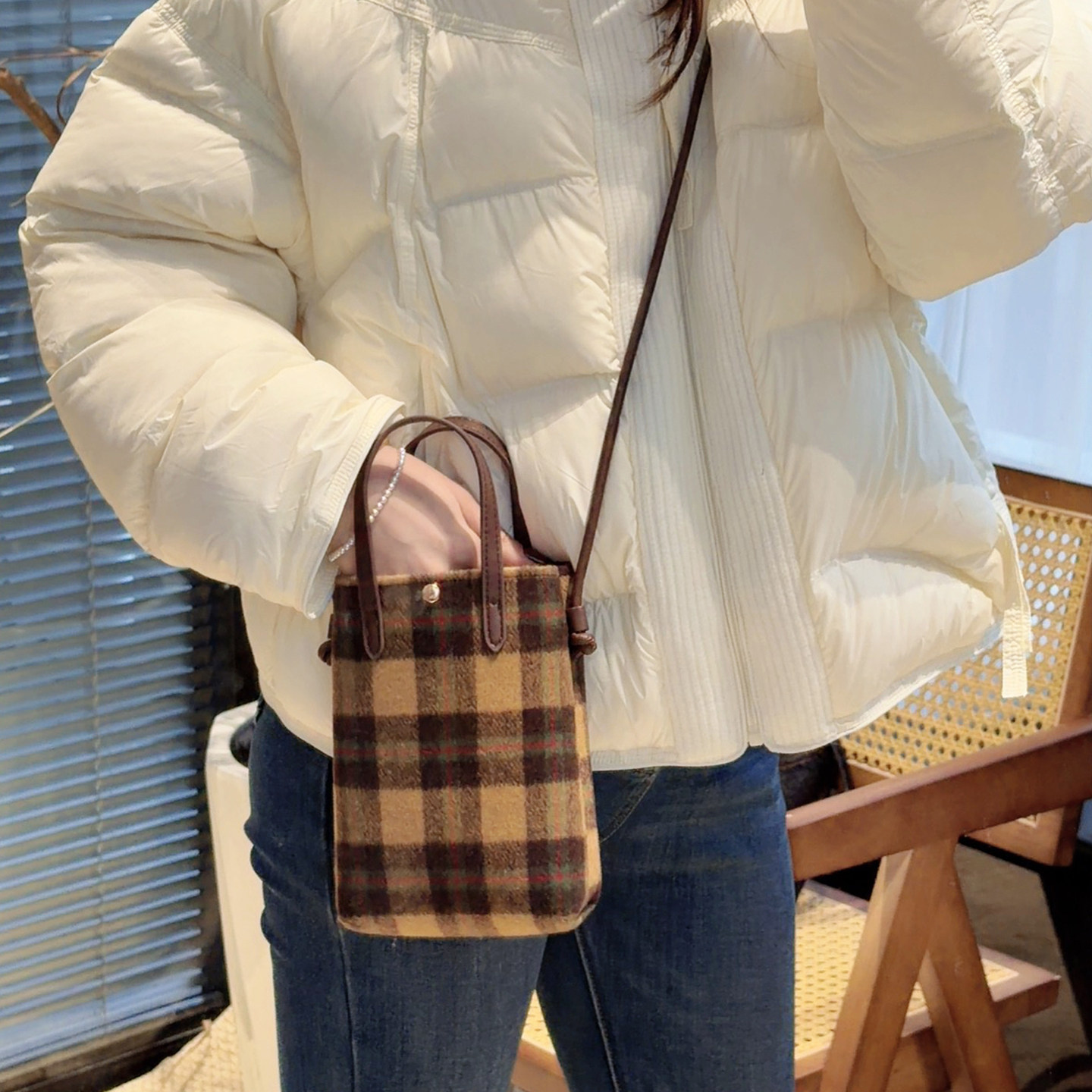 格纹呢料小方包女款单肩斜挎手机包2025新款秋冬迷你高级手提包