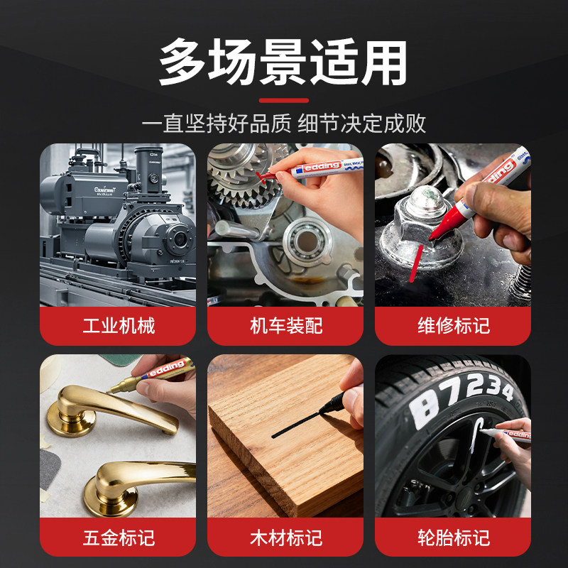 【可开发票】德国edding工业油漆笔防水防油不掉色耐高温马克笔金属补漆塑料补色涂鸦彩色油性记号笔企业批发