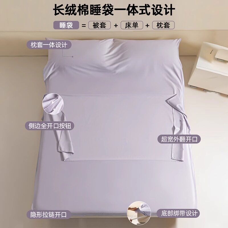 猫人长绒棉酒店隔脏睡袋全棉纯棉旅行床单被套一体便携式旅睡宝