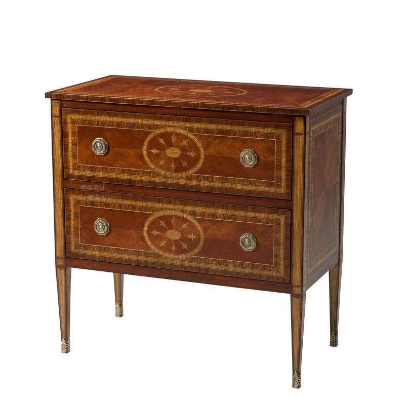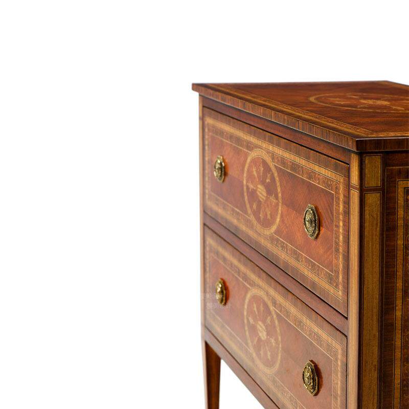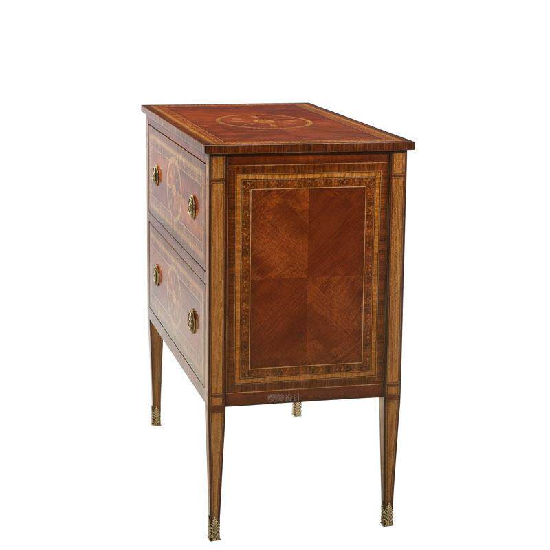 新古典实木斗柜亚历山大木纹拼花床头柜欧式宫廷样板房卧室装饰柜