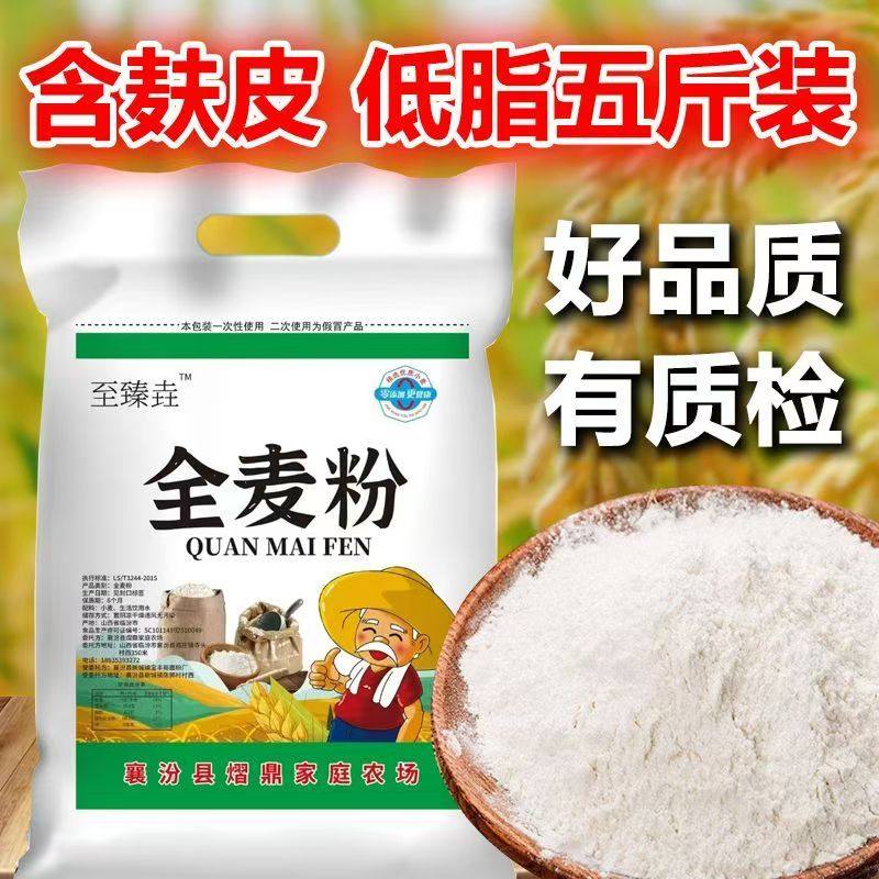 5斤纯全麦面粉农家全麦粉含麸皮整粒研磨家用馒头面包粉粗粮荞麦