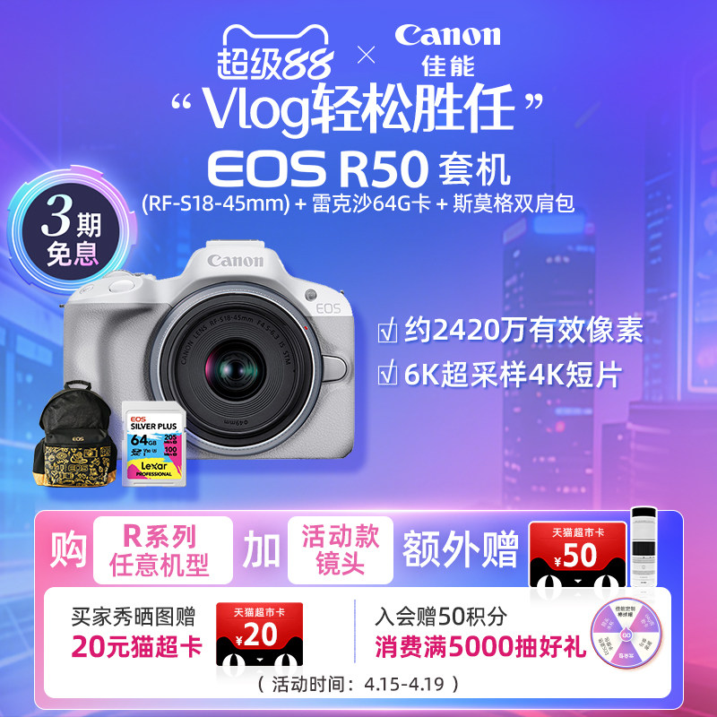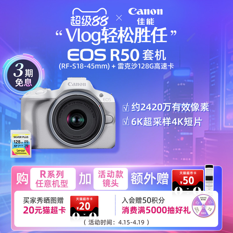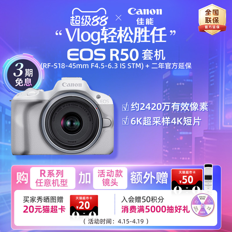 [旗舰店]Canon/佳能 EOS R50 机身/套机 微单入门女生新手相机