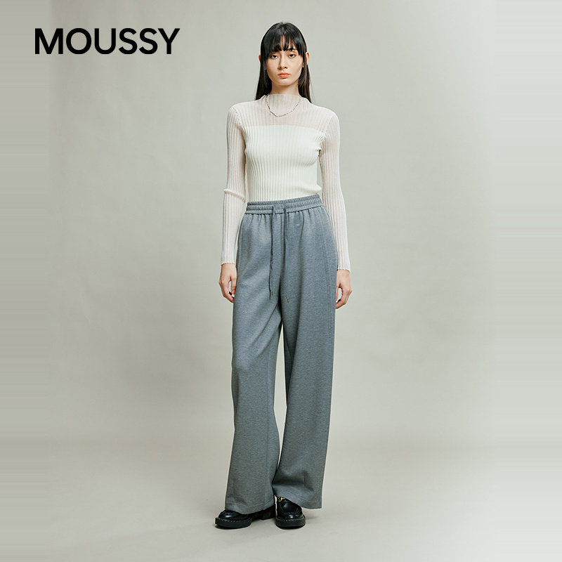 MOUSSY 秋季简约运动风抽绳阔腿休闲长裤女028IAB81-1003