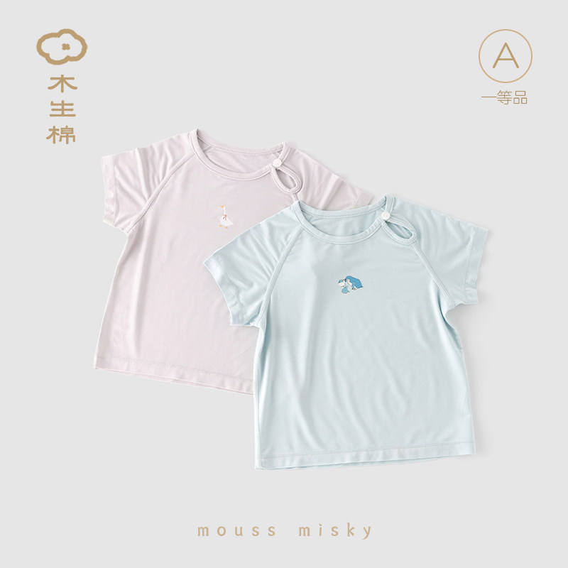 【优可丝】 宝宝短袖T恤衫夏季薄款婴儿透气弹力上衣儿童肩开夏装