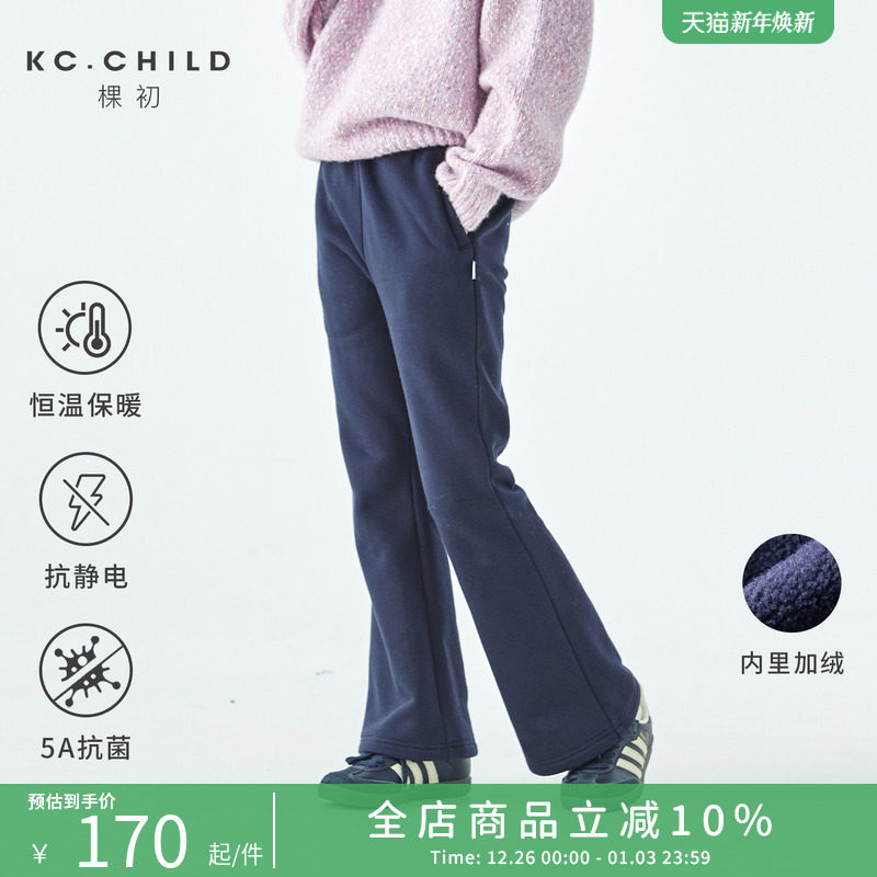 棵初2025年秋冬新款中大女童内里加绒喇叭卫裤抗菌抗静电休闲裤子