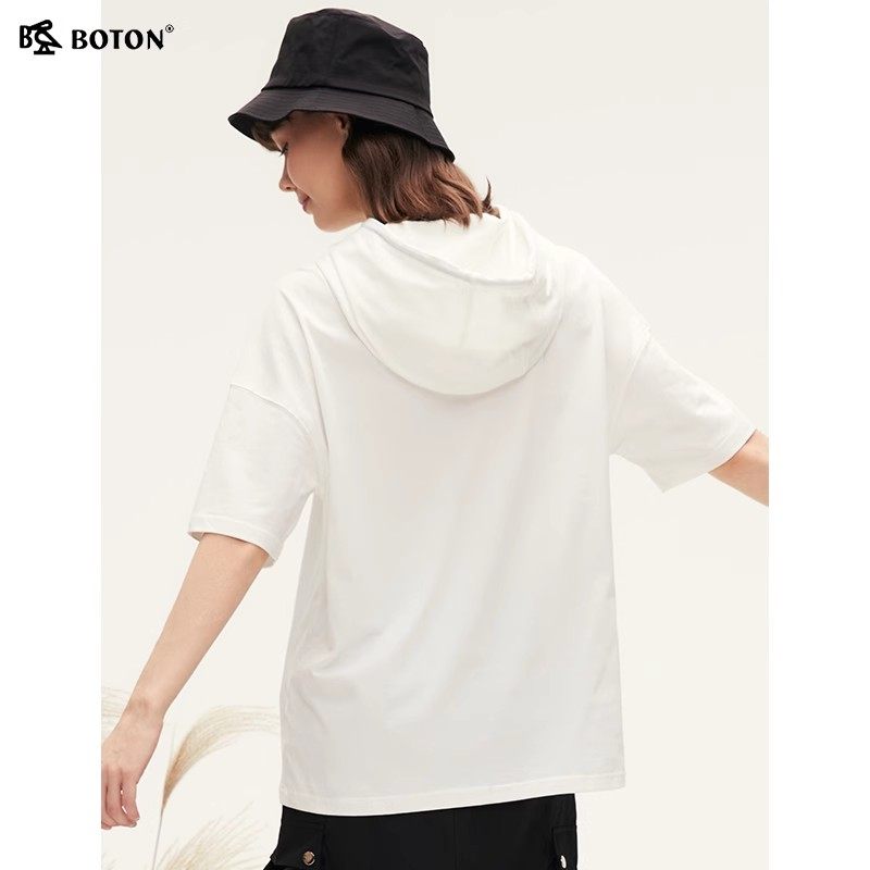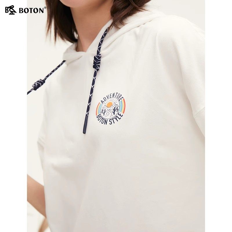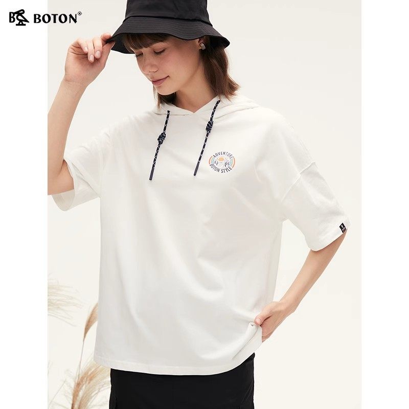 波顿连帽粉色t恤女设计感小众夏季短袖宽松休闲上衣潮纯棉卫衣