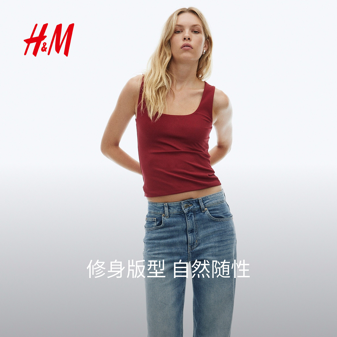 HM女装背心春季细纤维时尚内搭潮流简约深红色背心1292586