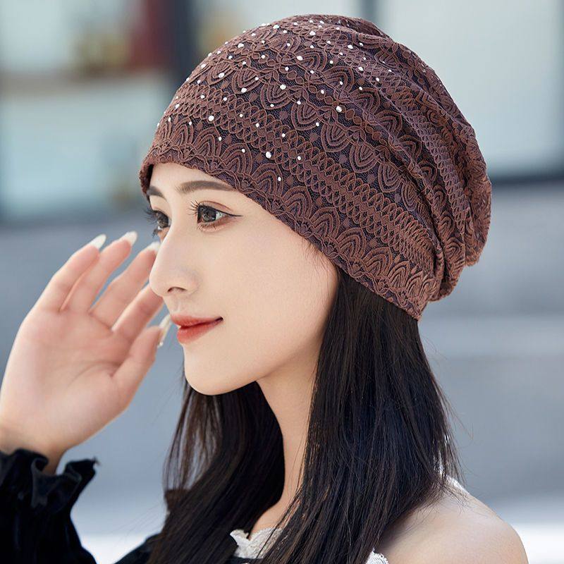 女中老年遮白发头饰包头帽头巾帽蕾丝薄款透气堆堆帽光头帽旅行
