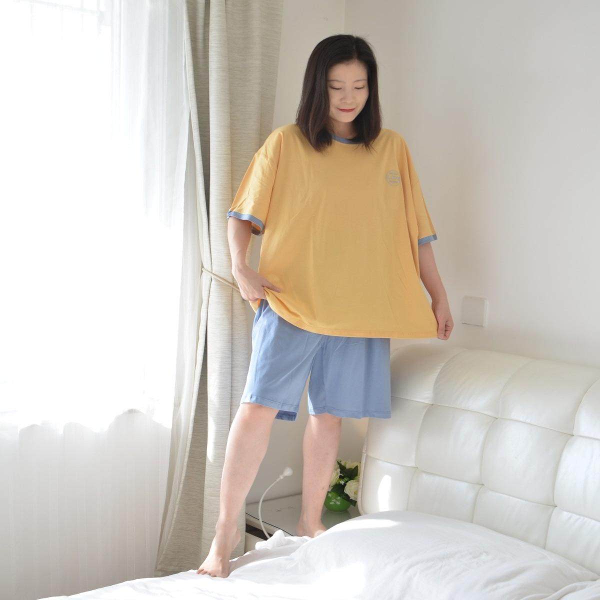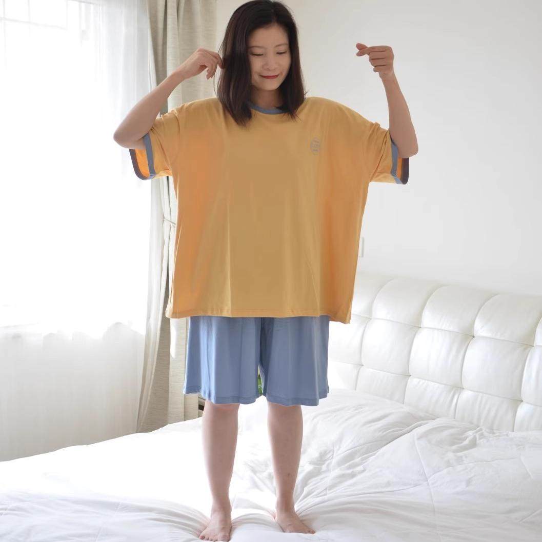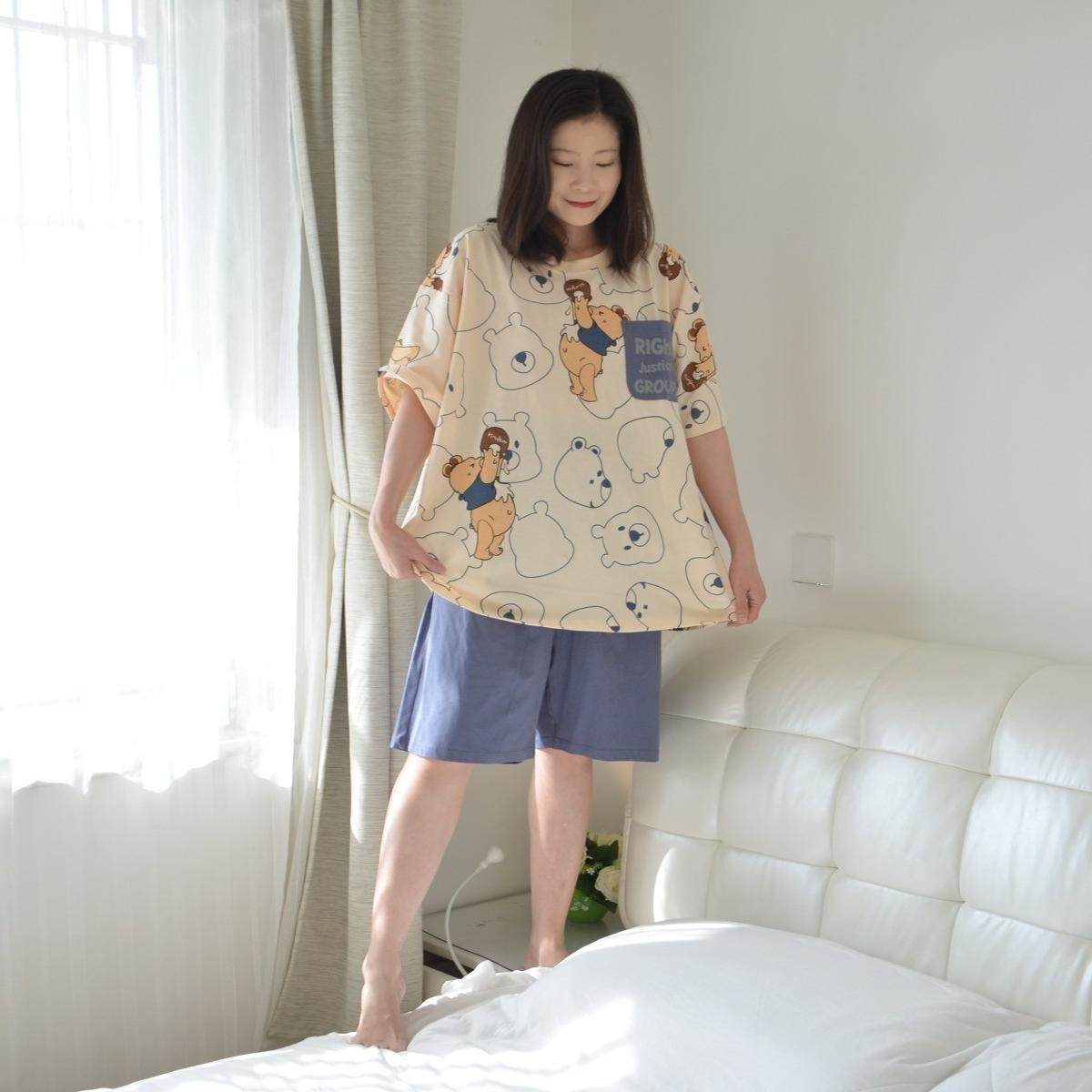 200斤加大码短袖短裤睡衣女胖MM夏季针织纯棉宽松宽松卡通家居服