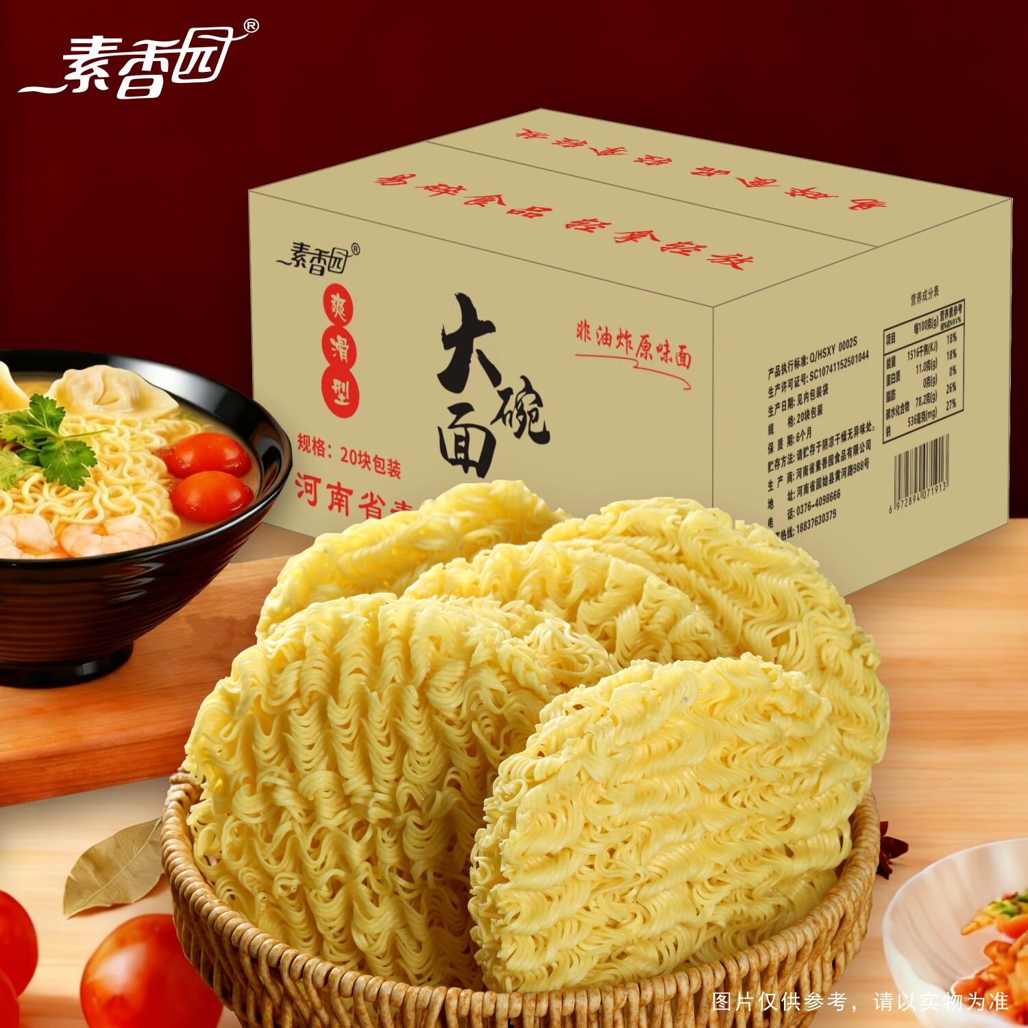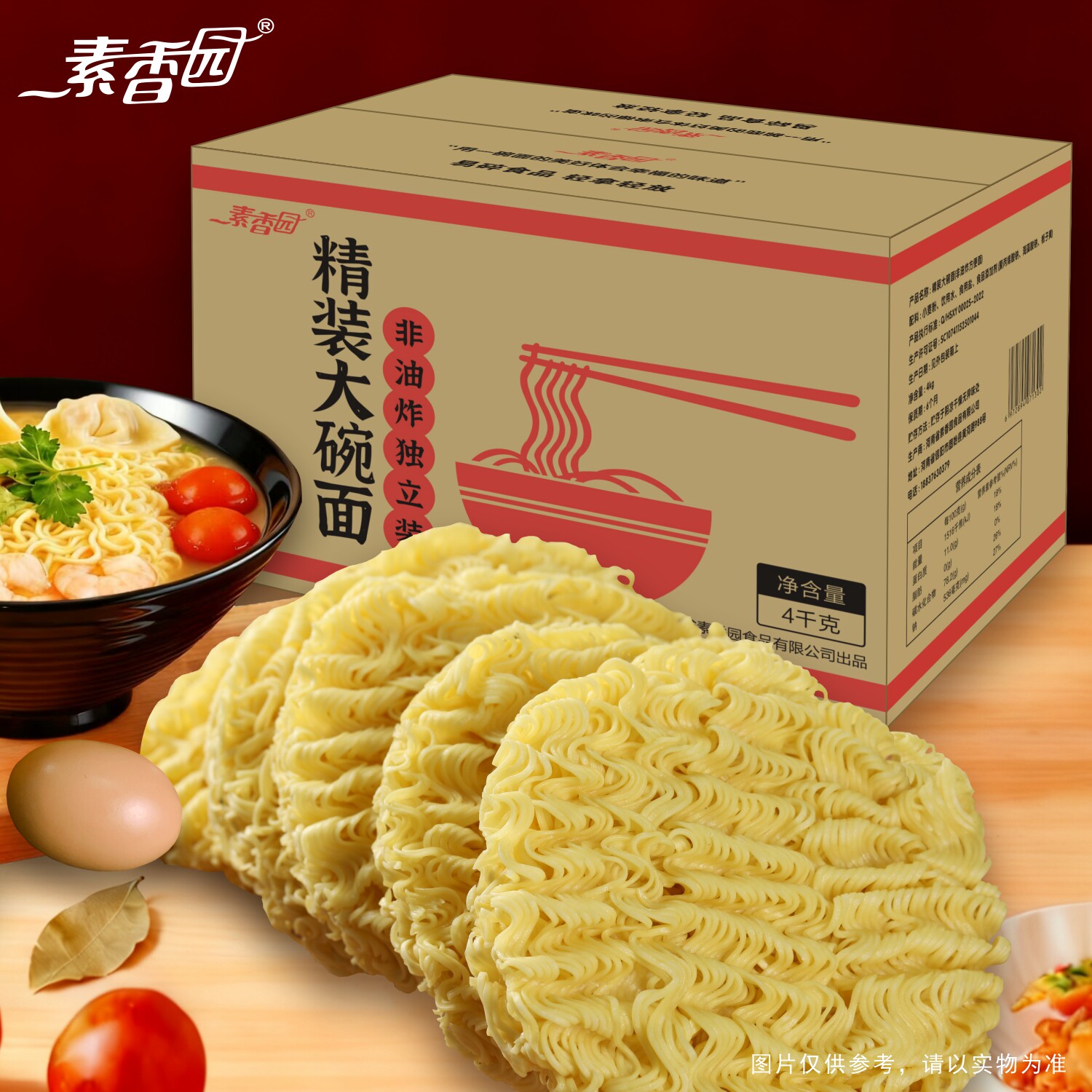 素香园大碗面9斤非油炸方便面面饼整箱批发火锅面火鸡面散装面条