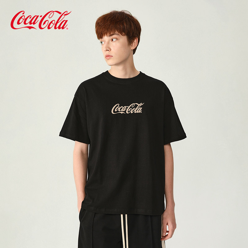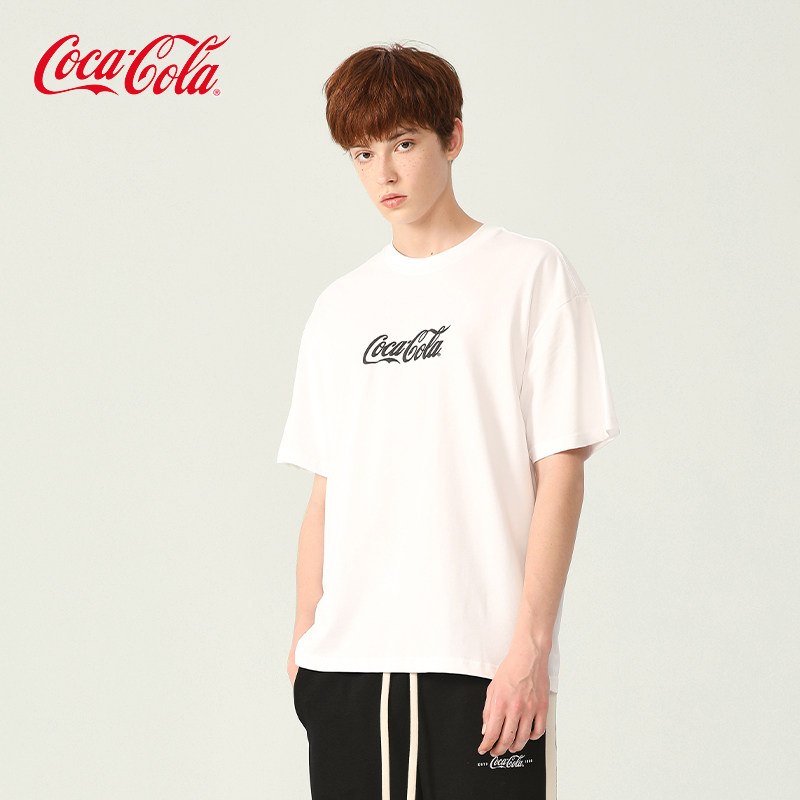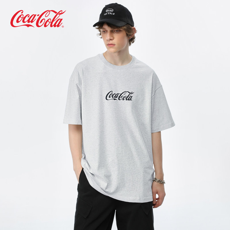 Coca-Cola/可口可乐 灰色短袖T恤男美式潮牌字母印花纯色情侣夏装