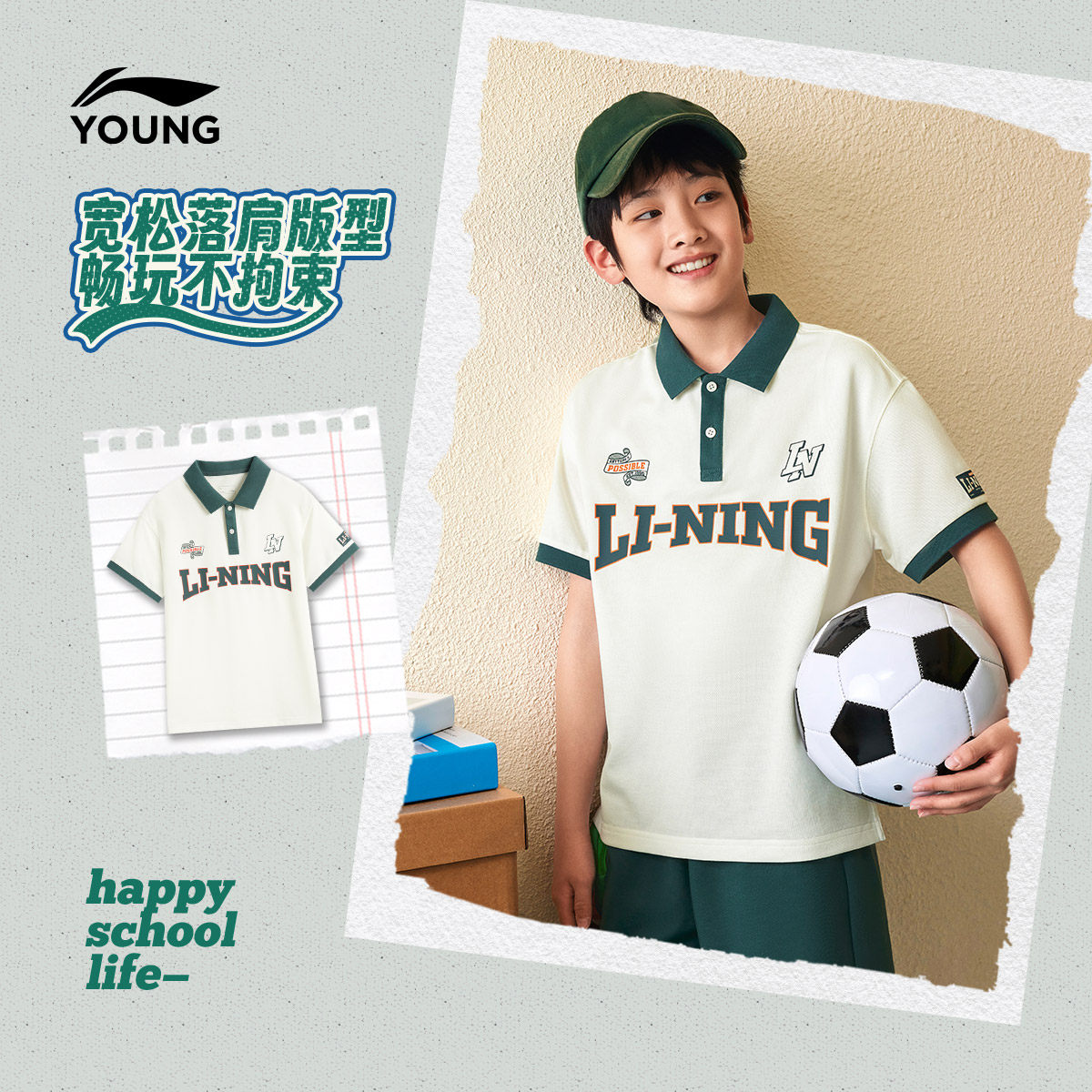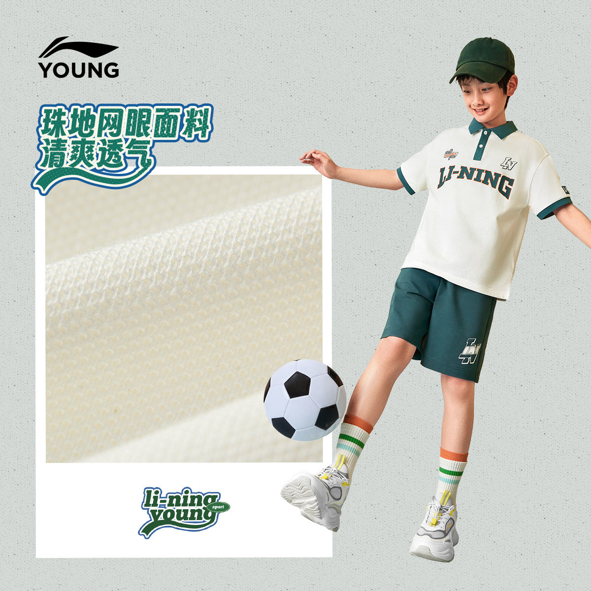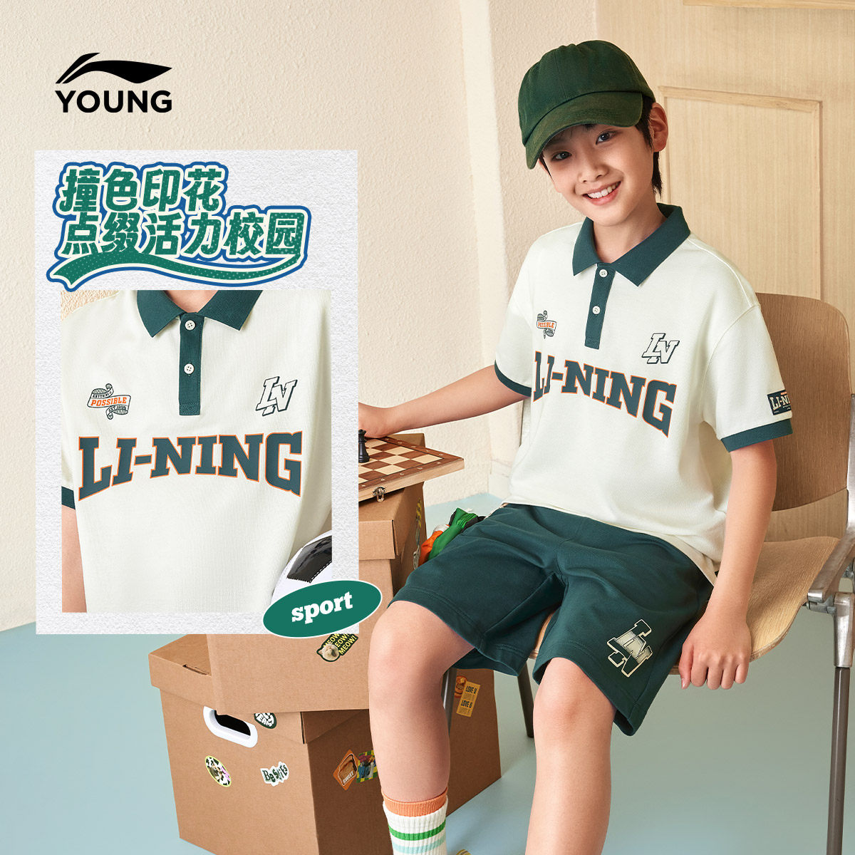 李宁童装短袖POLO衫男女小大童运动生活系列休闲夏季翻领针织童装