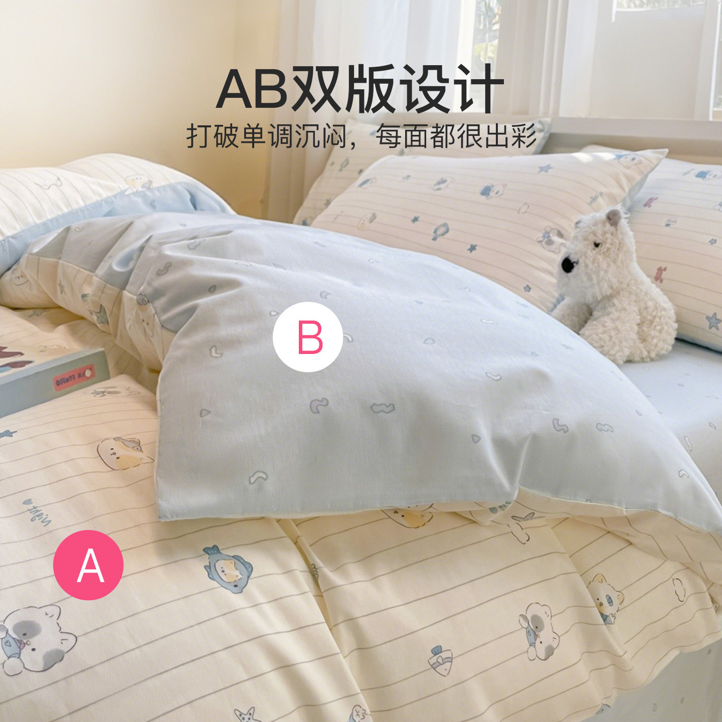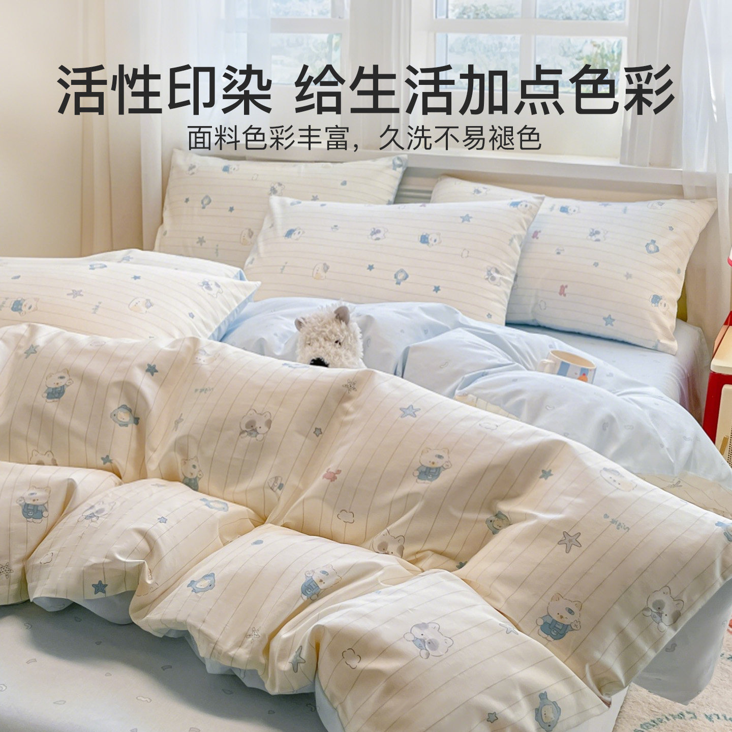 TeenieWeenie全棉水洗棉四件套100纯棉被套床单床笠款床上三件套4