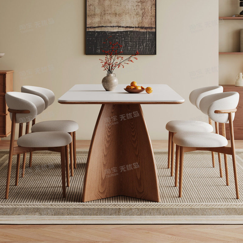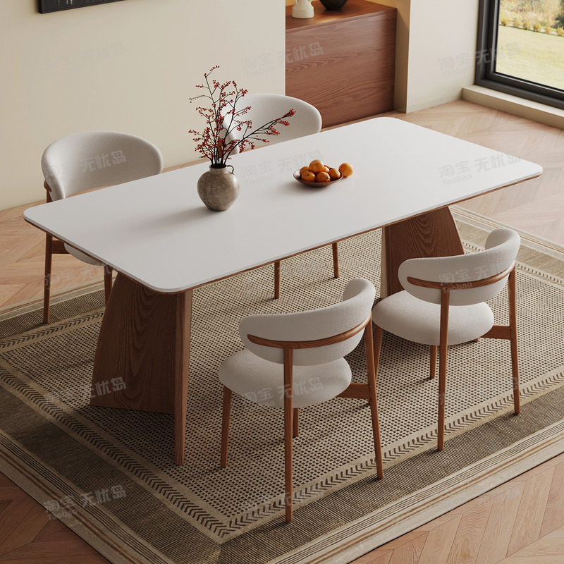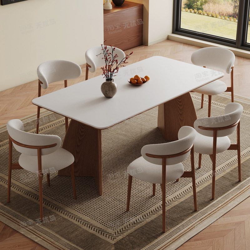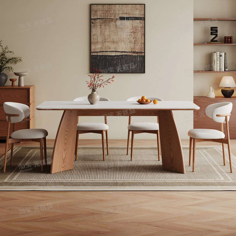 实木岩板餐桌组合中古风客厅饭桌家用法式复古长方形餐厅吃饭桌子