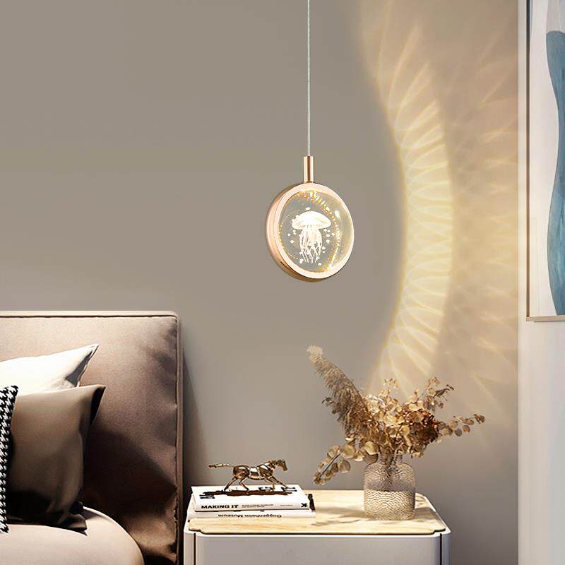 主卧卧室床头吊灯简约现代创意水晶水母网红艺术氛围长线小吊灯具