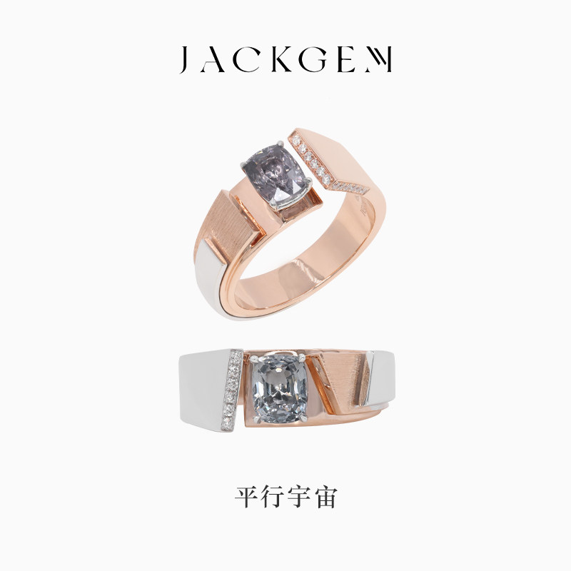 【平行宇宙】灰色尖晶石戒指18K金戒指女玫瑰金戒指彩宝首饰金I2