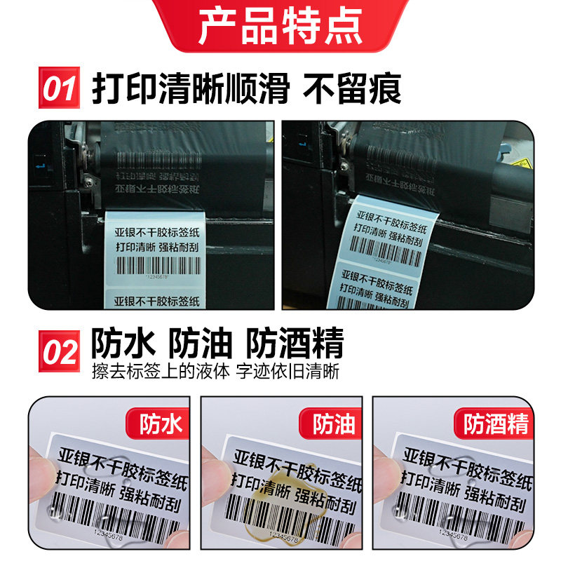 亚银标签纸不干胶条码打印纸pet标签食品珠宝碳带耐高温防水防油撕不烂空白银色三防固定资产办公储物柜定制