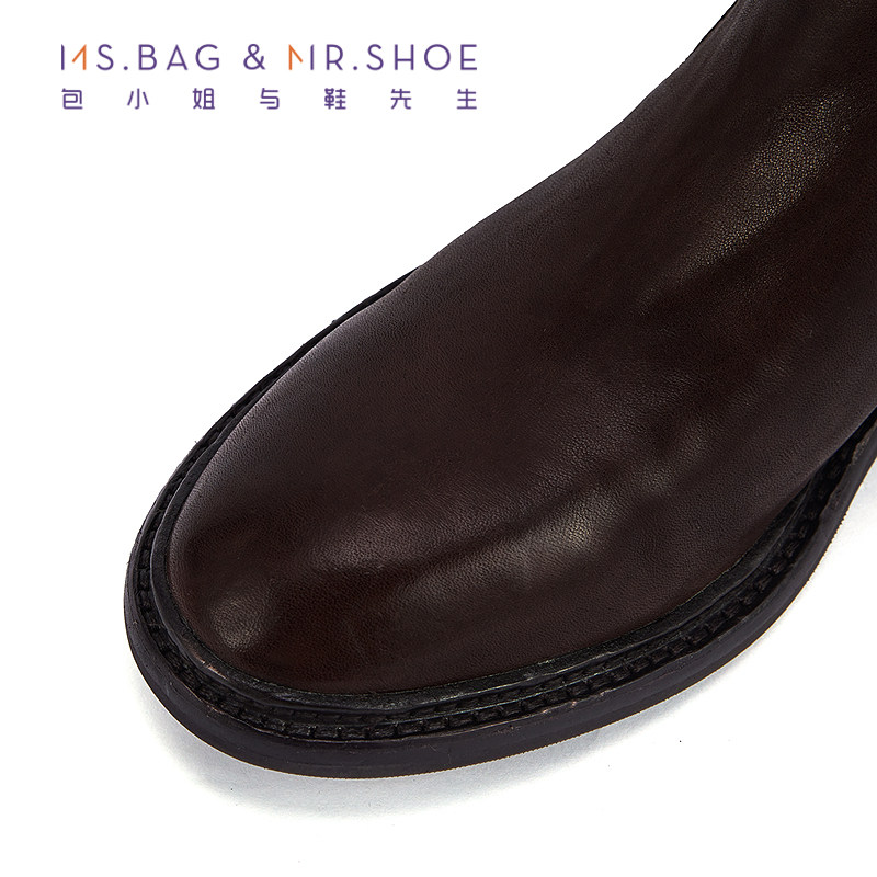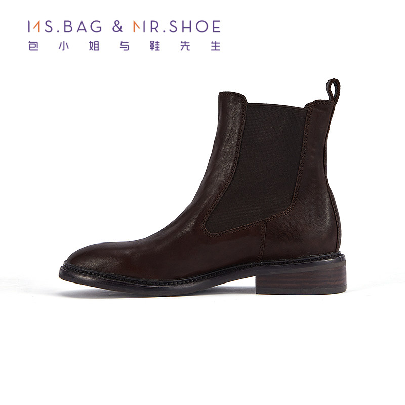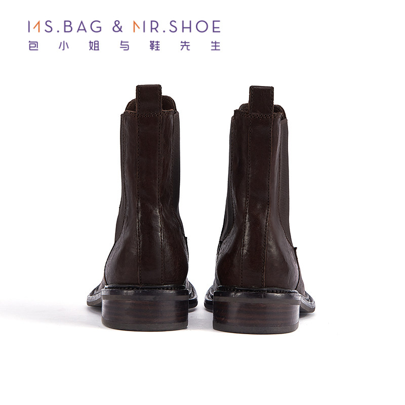 包小姐与鞋先生冬季款圆头平底水洗马皮做旧质感短靴女234113