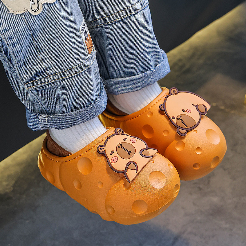 卡皮巴拉儿童棉拖鞋包跟男童冬季防水防滑室内亲子女宝宝拖鞋棉鞋