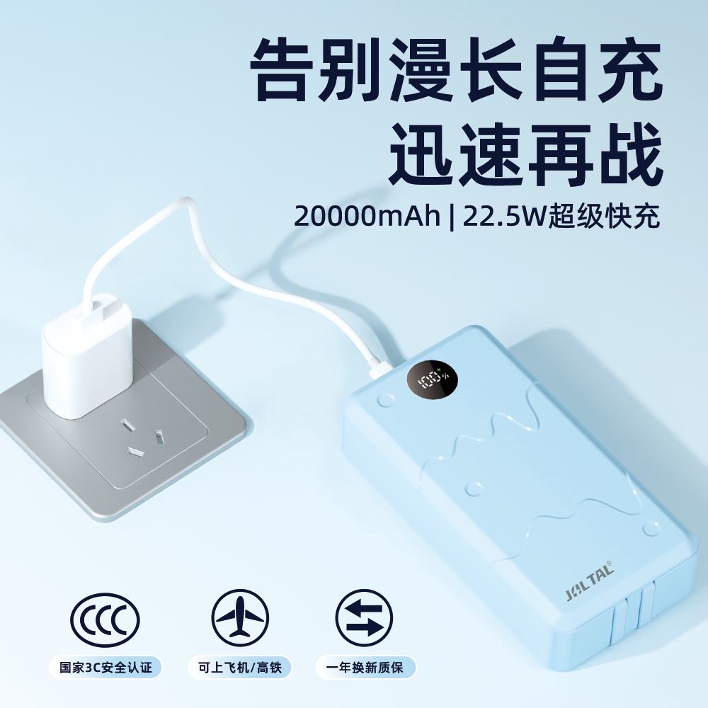 【3C认证充电宝】品胜自带插头20000毫安大容量10000充电器二合一电霸标识自带线适用苹果17小米移动电源
