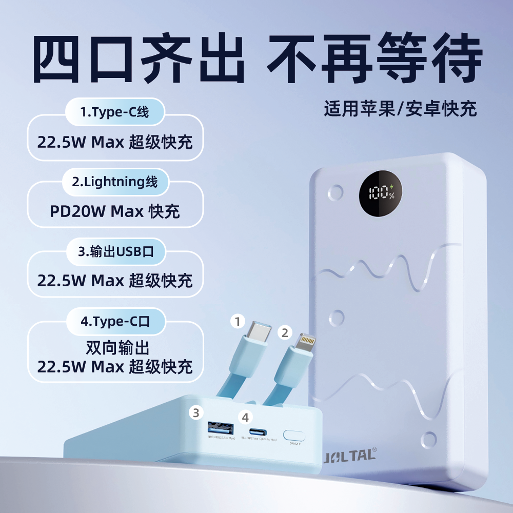 巨拓充电宝新款自带线大容量3c认证快充可上飞机高铁适苹果16安卓
