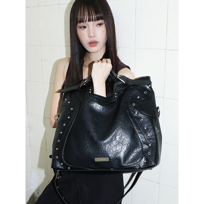 Acynmixx中性风朋克铆钉机车包大容量可翻折托特包小众设计斜挎包