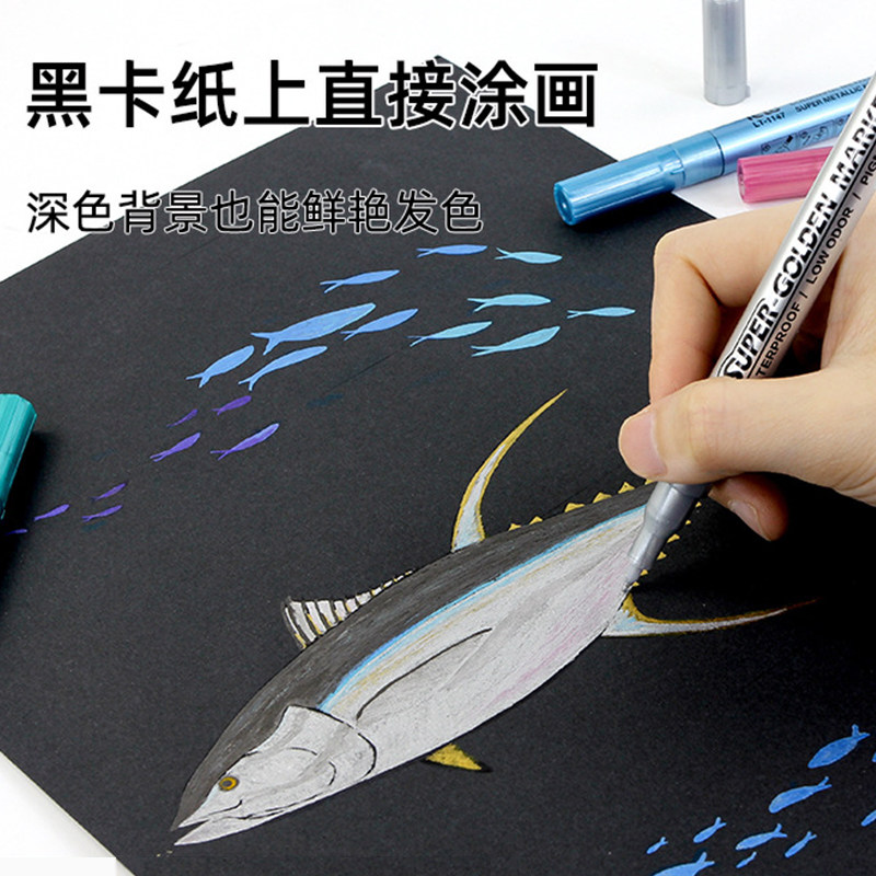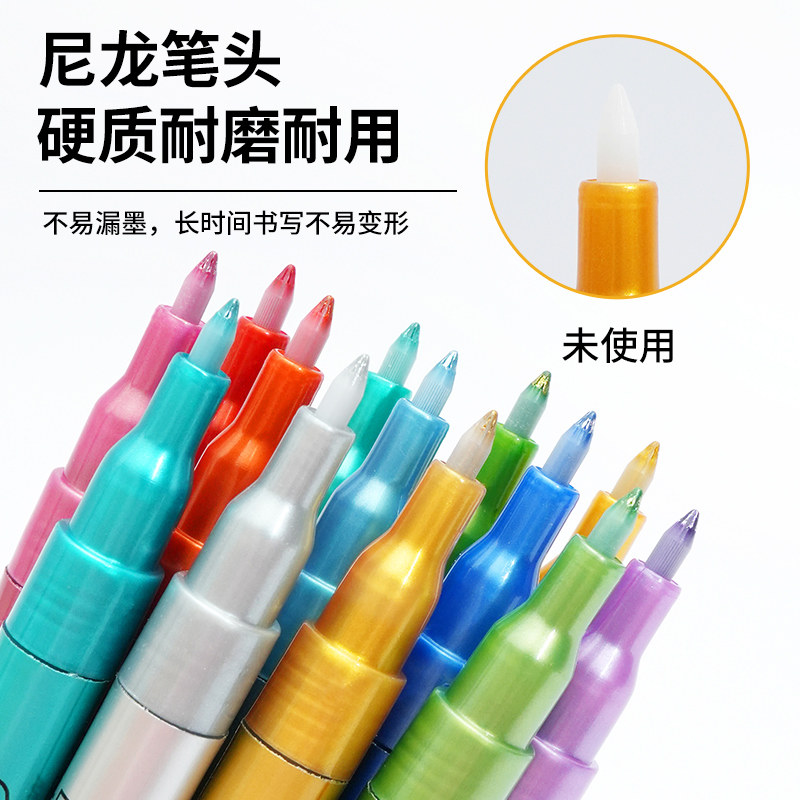 leto超级金属色丙烯马克笔高达模型手办上色补色工具彩色闪光尖头硬头画笔涂鸦彩笔细头0.7mm防水不掉色