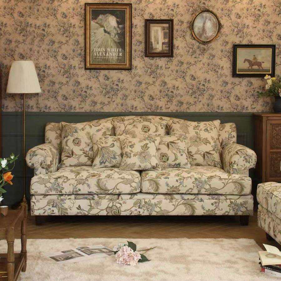 美式沙发客厅单双三沙发组合提花布艺阳台沙发椅复古高密度沙发