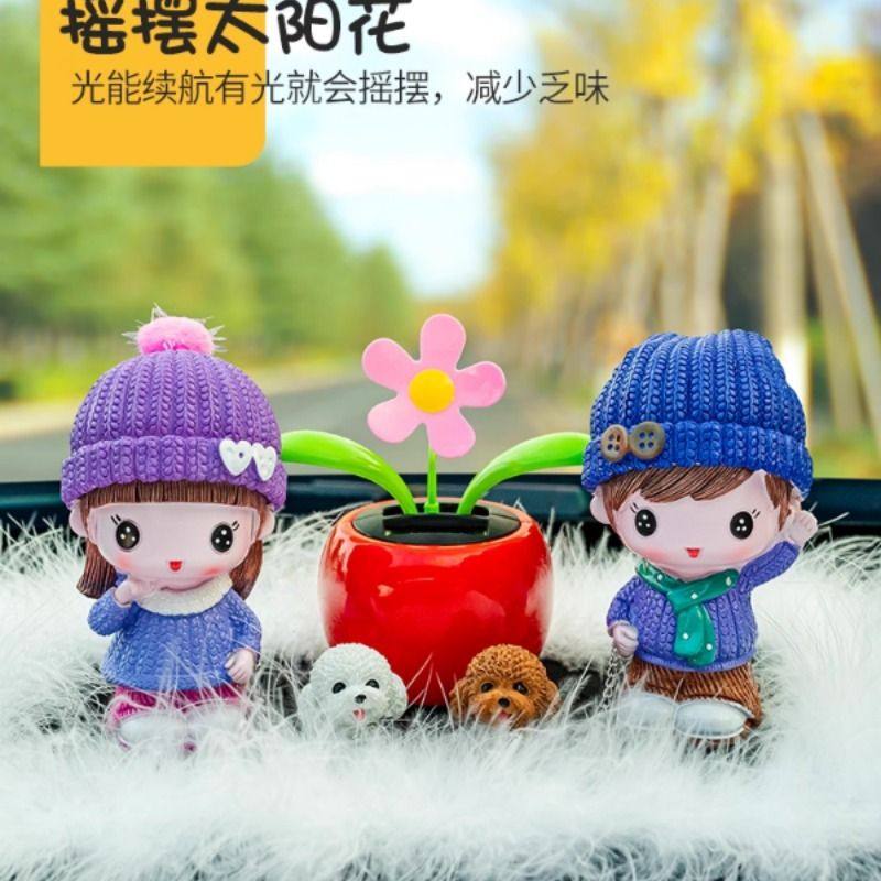 向日葵车载摆件网红创意可爱摇头清新花朵汽车中控台后视镜装饰品