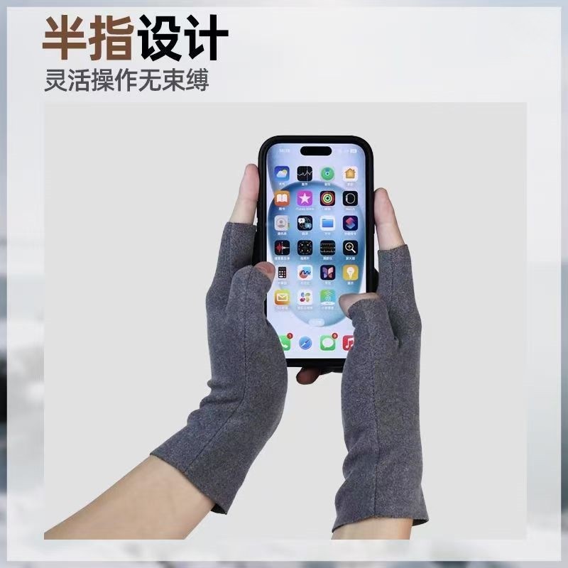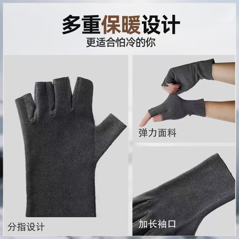 露二指骑行手套保暖冬季触屏韩版毛绒防寒漏指骑车办公写字神器