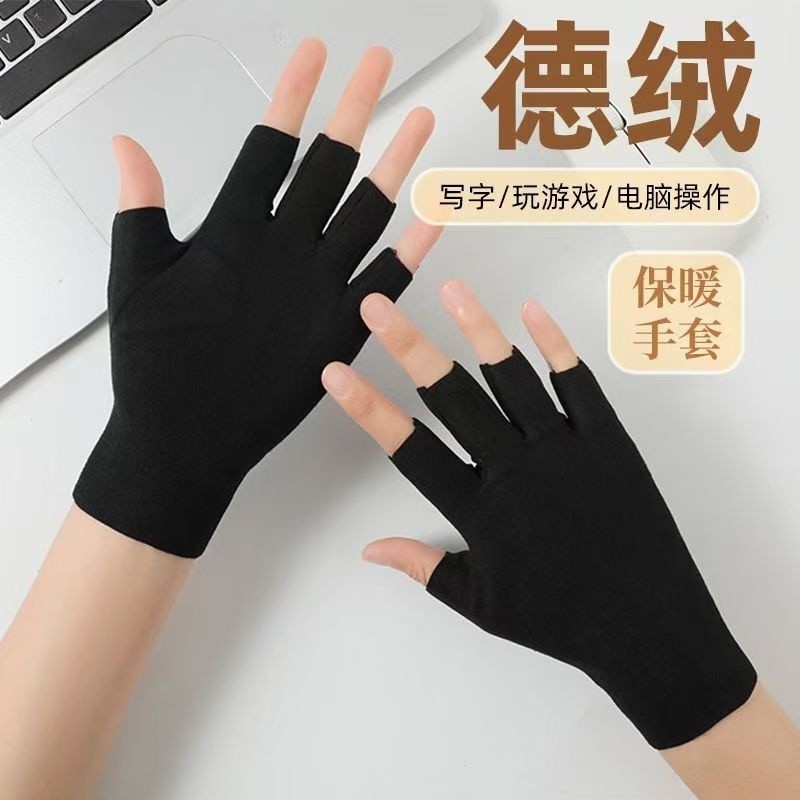 半指手套女冬季2025天德绒薄款五指半截露指学生写字保暖作业袖口