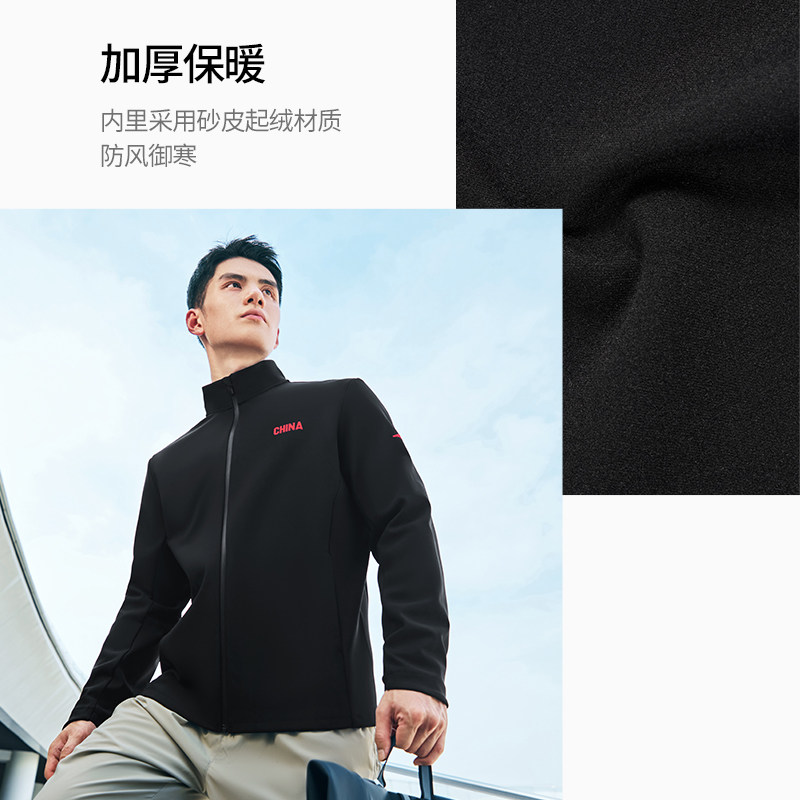 李宁软壳外套男冬季新款跑步夹克上衣保暖户外冲锋加绒厚运动风衣