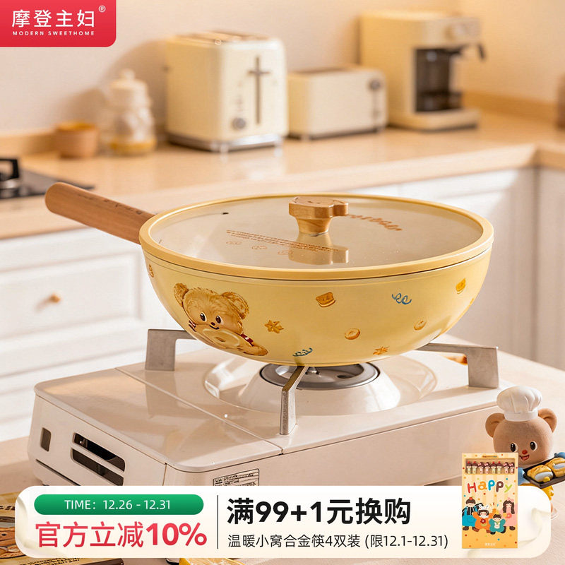 【摩登主妇&黄油小熊】钛陶瓷炒菜锅具家用电磁炉专用不粘平底锅