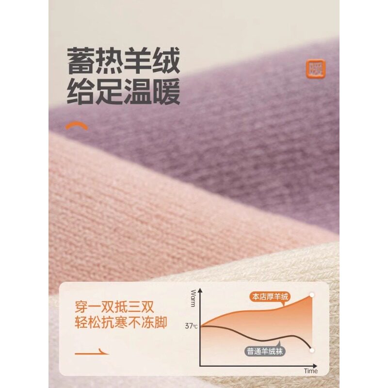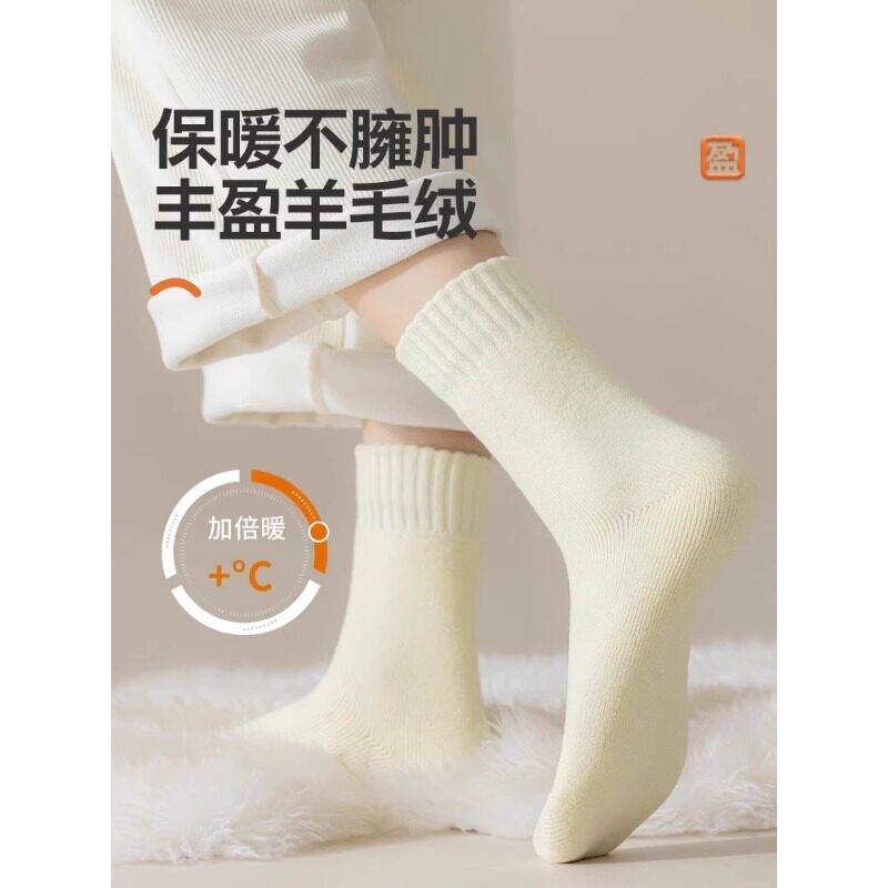 羊绒袜子女冬季中筒袜加绒加厚保暖月子袜毛绒地板袜冬天长袜羊毛
