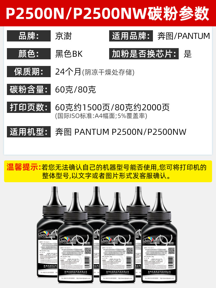 适用奔图p2500nw碳粉PD-201t通用Pantum奔腾牌黑白单功能激光打印机P2500N专用墨粉易加粉本图碳粉晒鼓炭墨粉