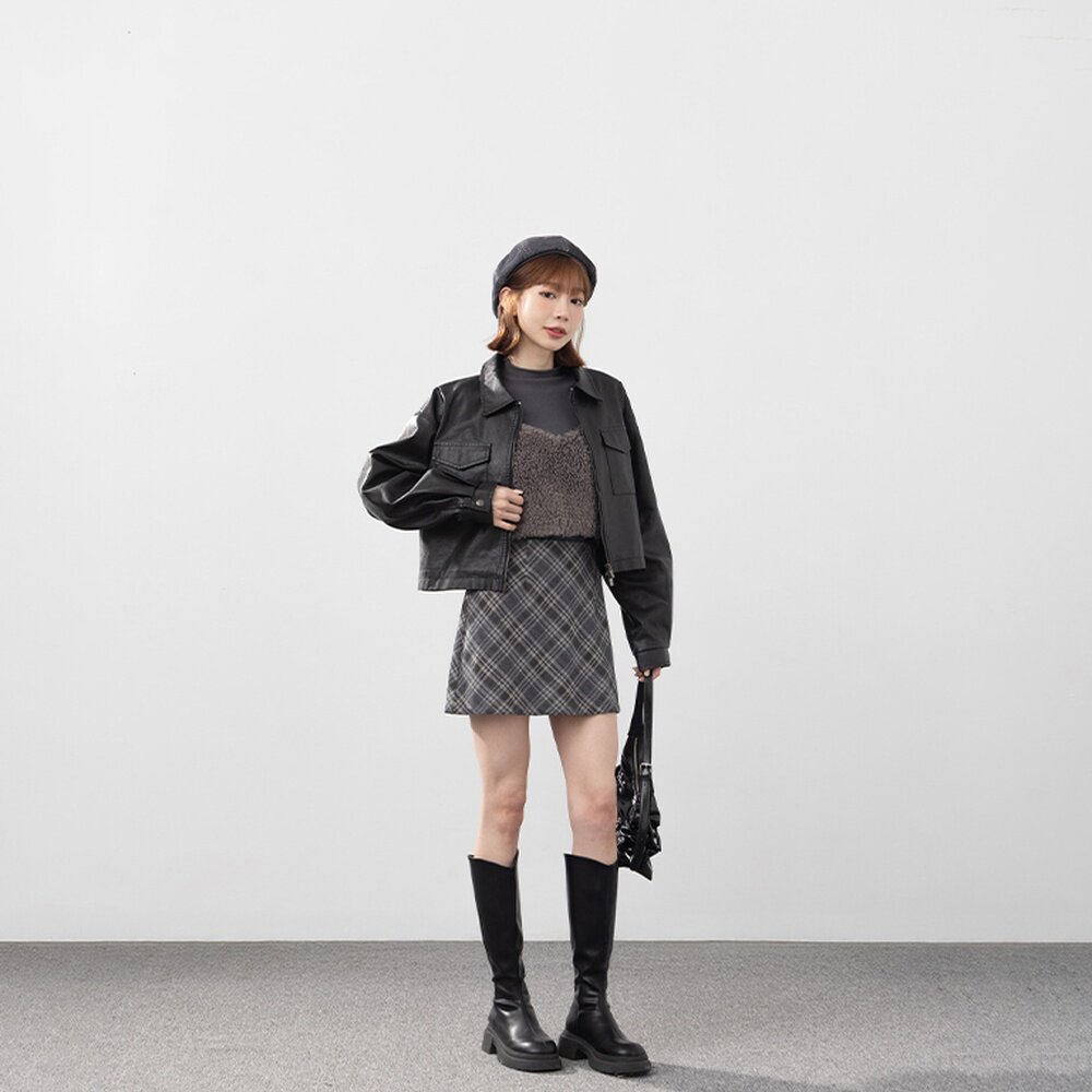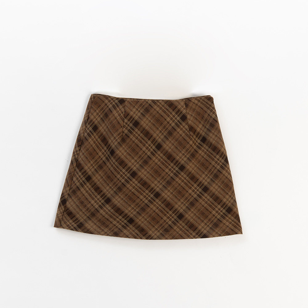 QUEENSHOP 2025秋冬新品女装复古配色格纹设计毛呢短裙03010933