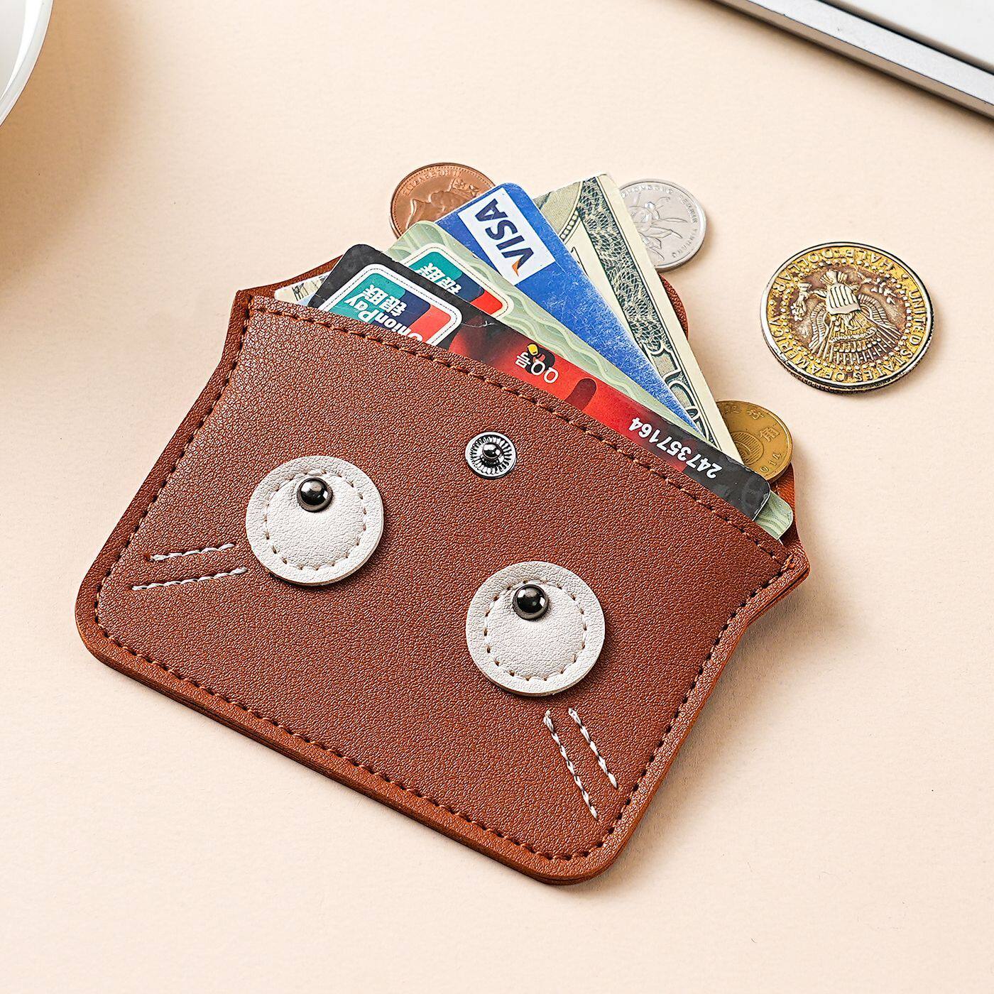 ins复古卡通卡包小巧超轻薄大容量真皮质感银行卡零钱硬币收纳包