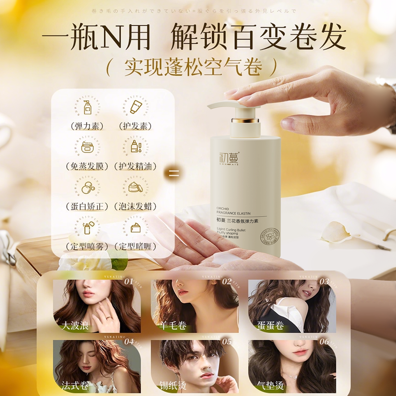 弹力素卷发女保湿持久定型防毛躁蓬松烫头发后护发精华素弹力护卷