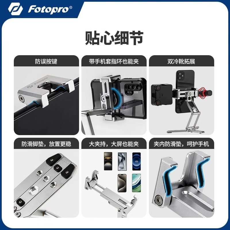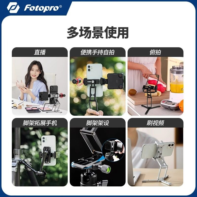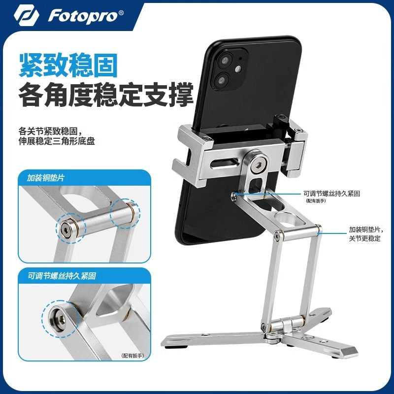 富图宝SY369金属手机支架网课追剧折叠360度旋转调节横竖拍手机夹桌面直播可冷靴拓展补光灯架三脚架支撑架子