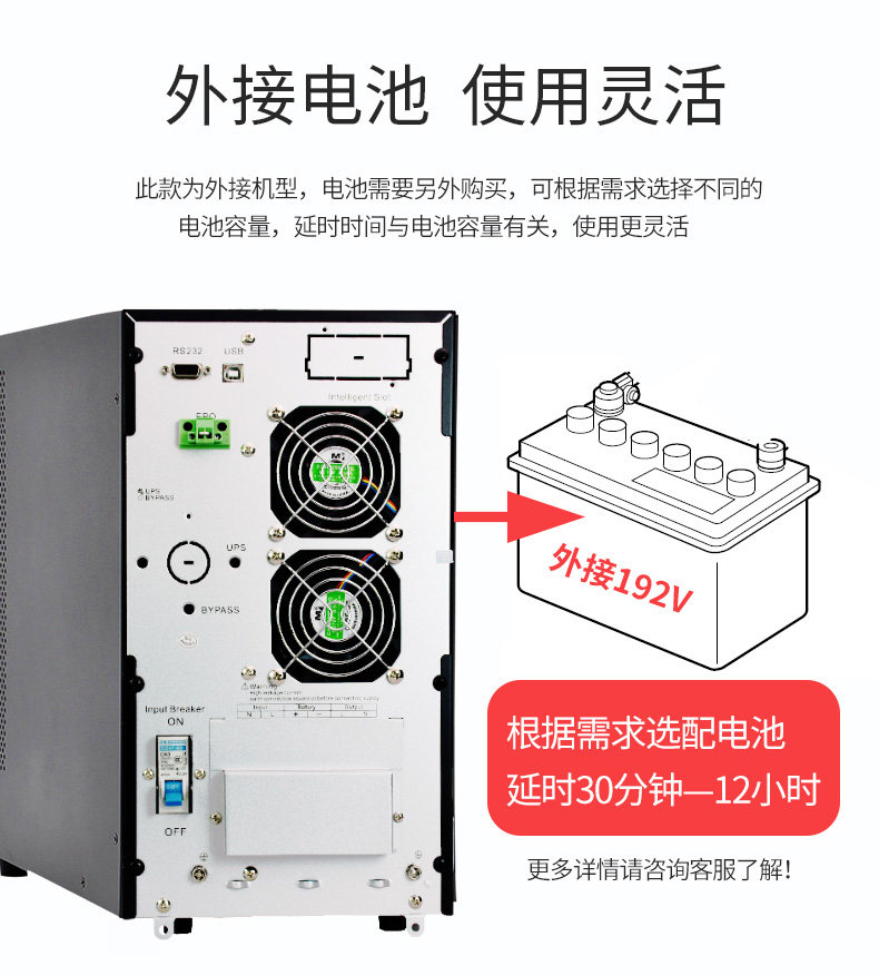 守护星SVC 在线式UPS电源6KW长延时防断电监控机房备用PT6KL 6KVA