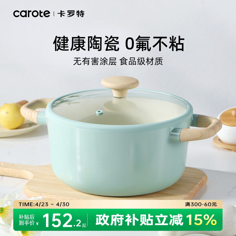 卡罗特汤锅有钛不粘锅炖锅家用煎炒蒸煮粥奶锅麦饭石电磁炉泡面锅