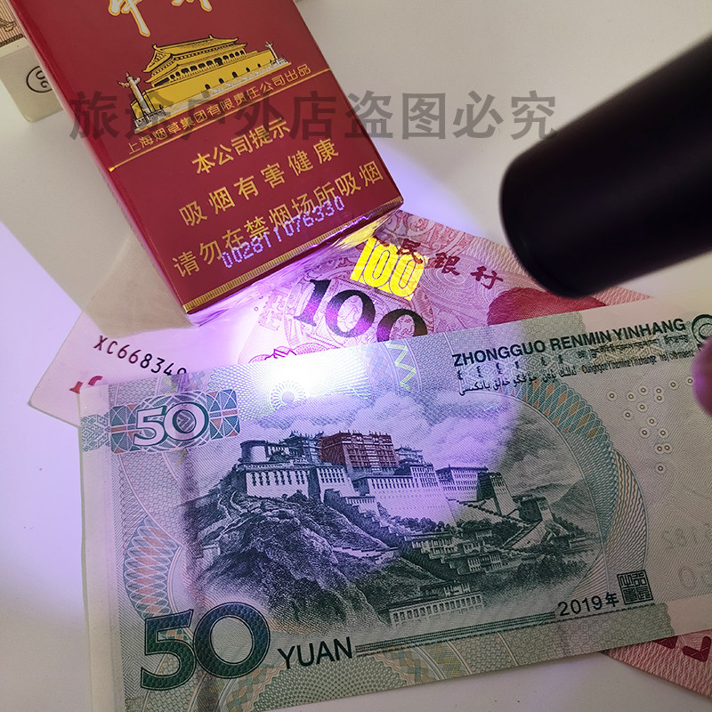 蓝光手电筒板材防伪紫光灯鉴定烟酒专用验钞紫外线识别真假照烟灯
