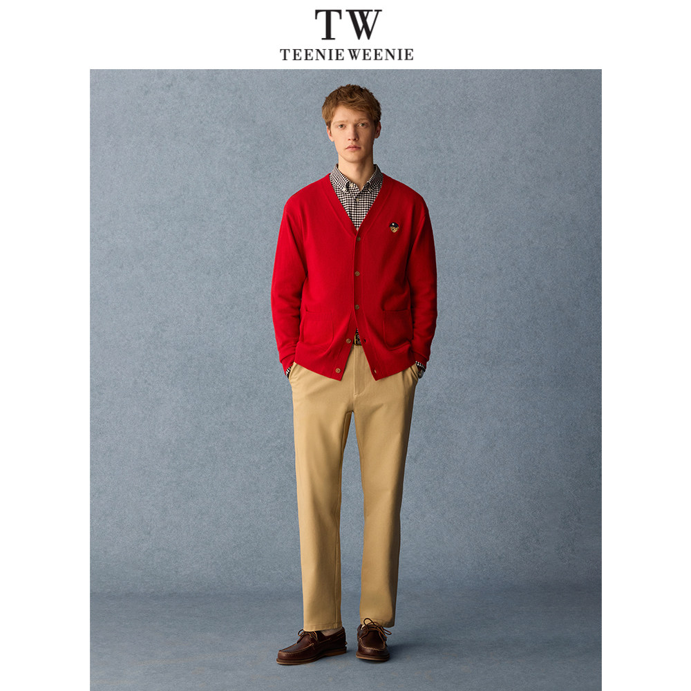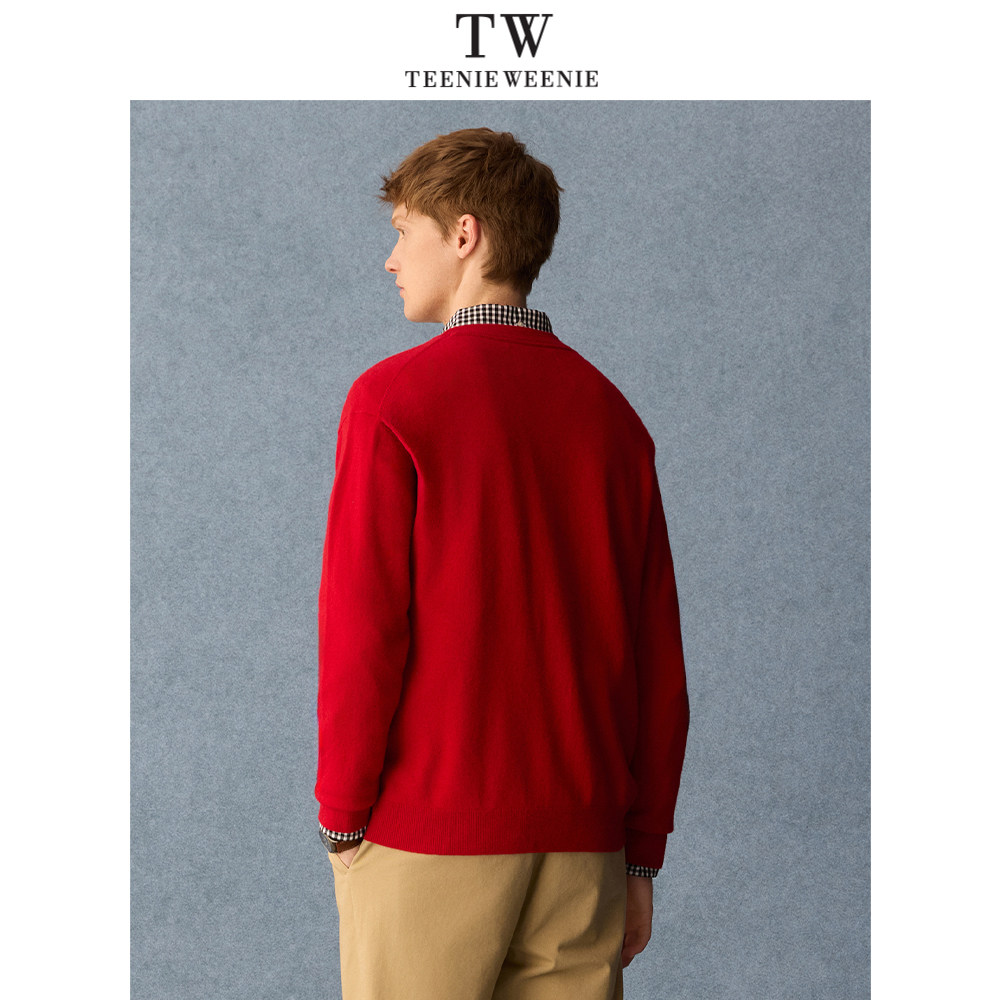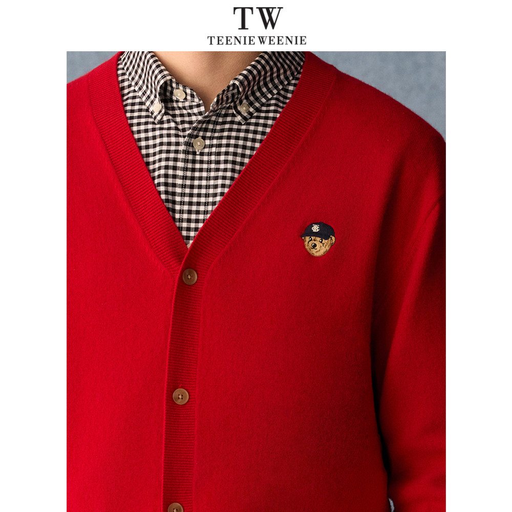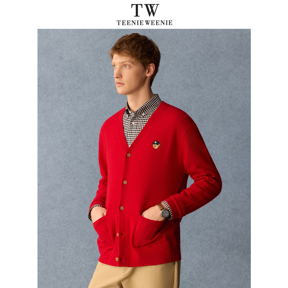 Teenie Weenie小熊男装新年氛围日常休闲V领保暖毛衣开衫2026年春