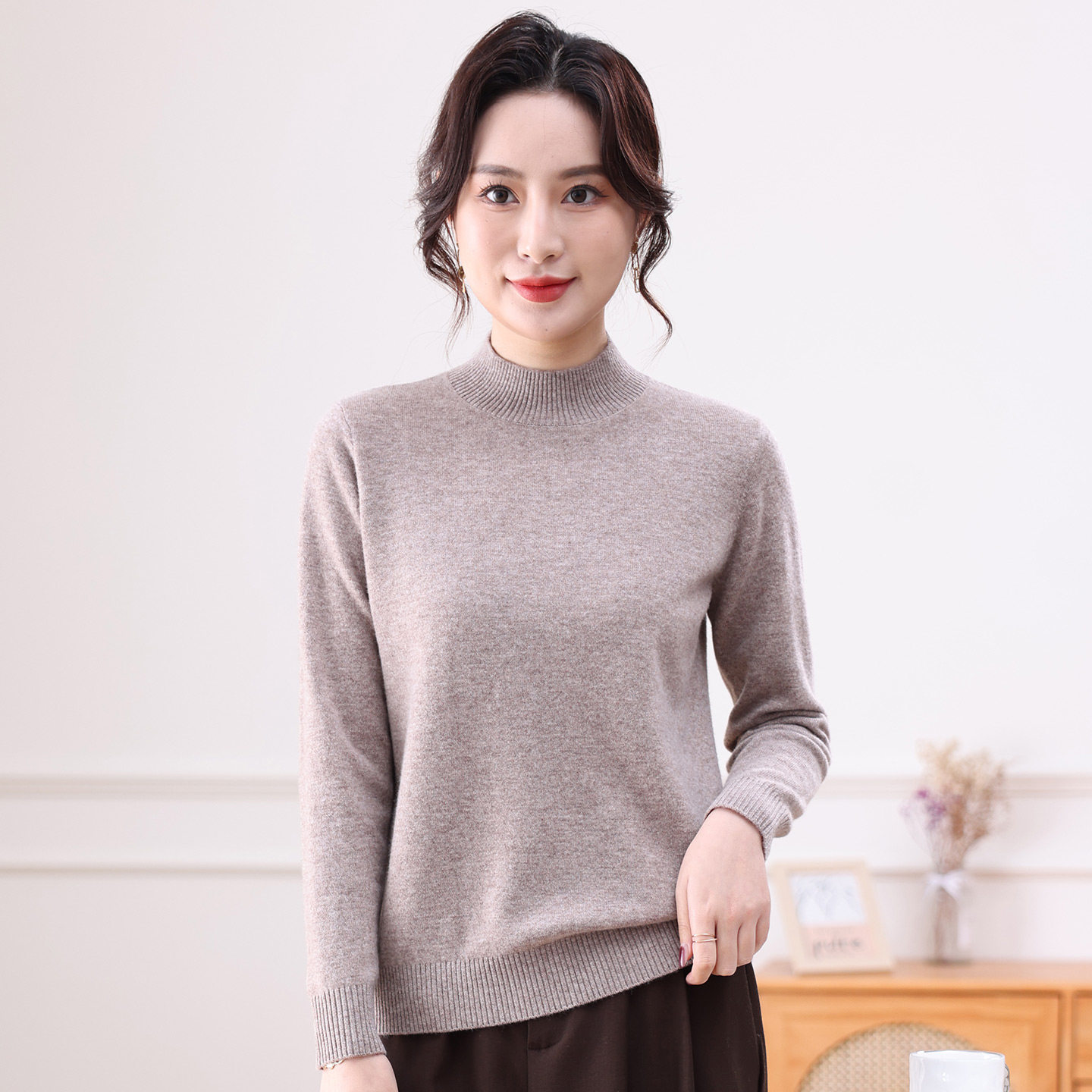 一线成衣无缝女半高领套头打底衫秋冬内搭毛衣修身长袖羊毛针织衫