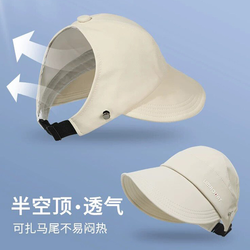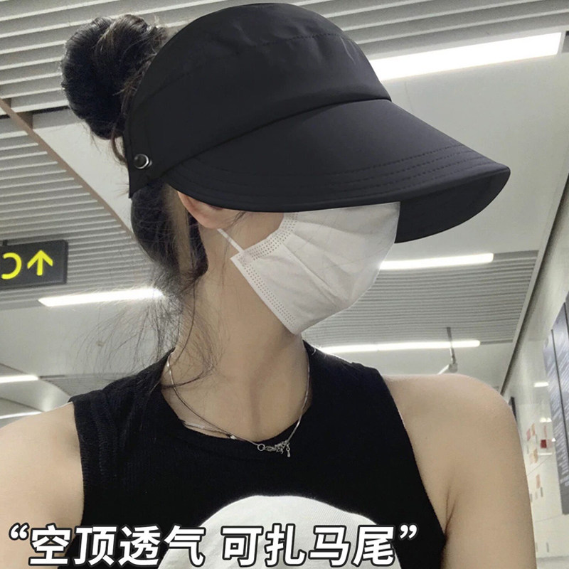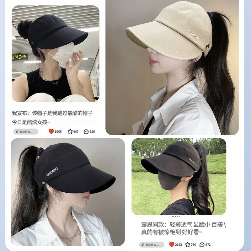 防晒帽女空顶高马尾鸭舌渔夫帽子2026新款户外防紫外线速干太阳帽