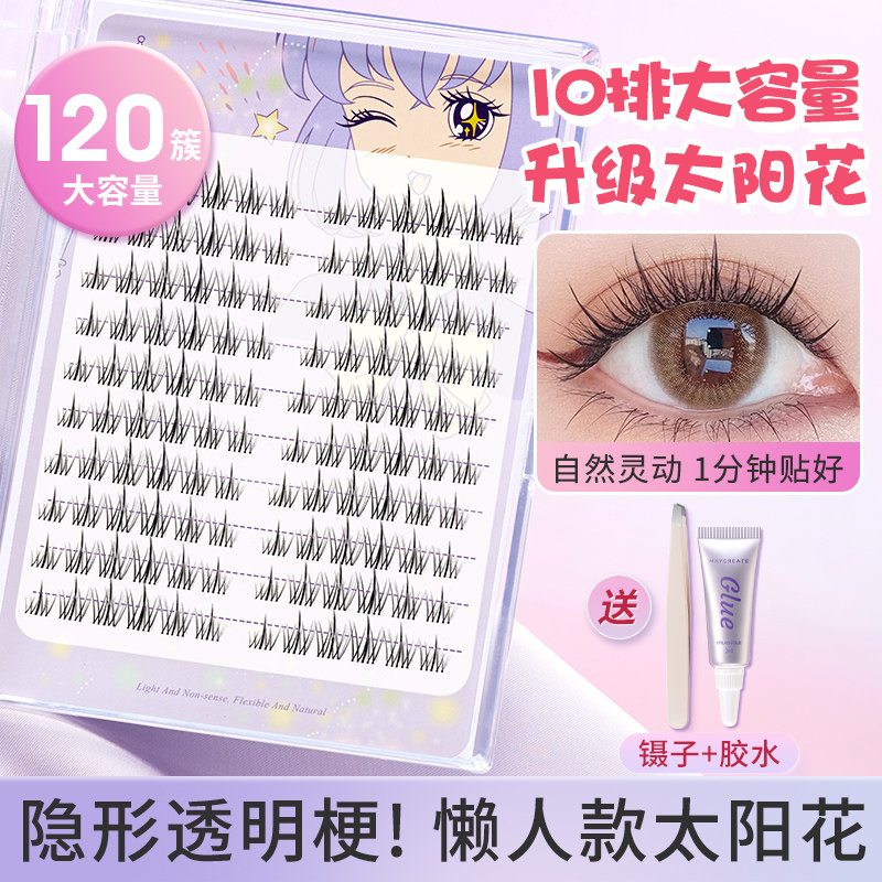 10排健美创研假睫毛女太阳花三部曲自然仿真免胶自粘眼睫毛贴懒人