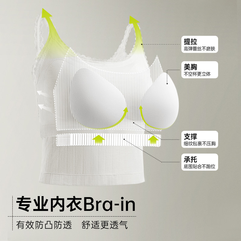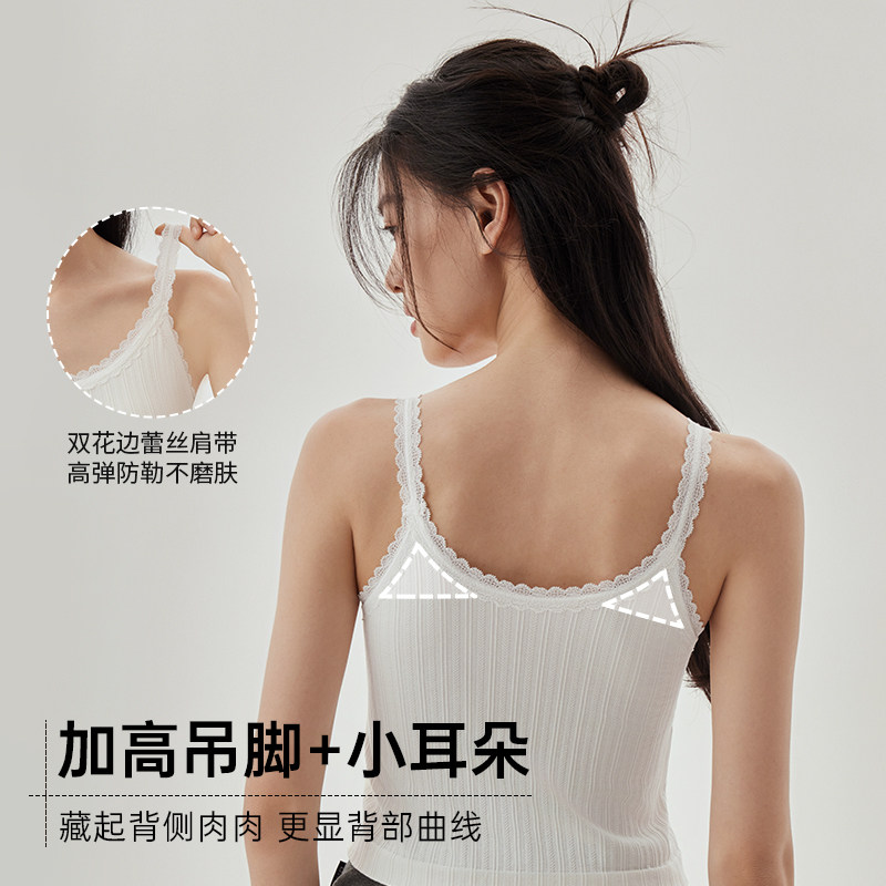 半练蕾丝带胸垫背心少女感白色吊带美背遮副乳夏新款内搭外穿上衣